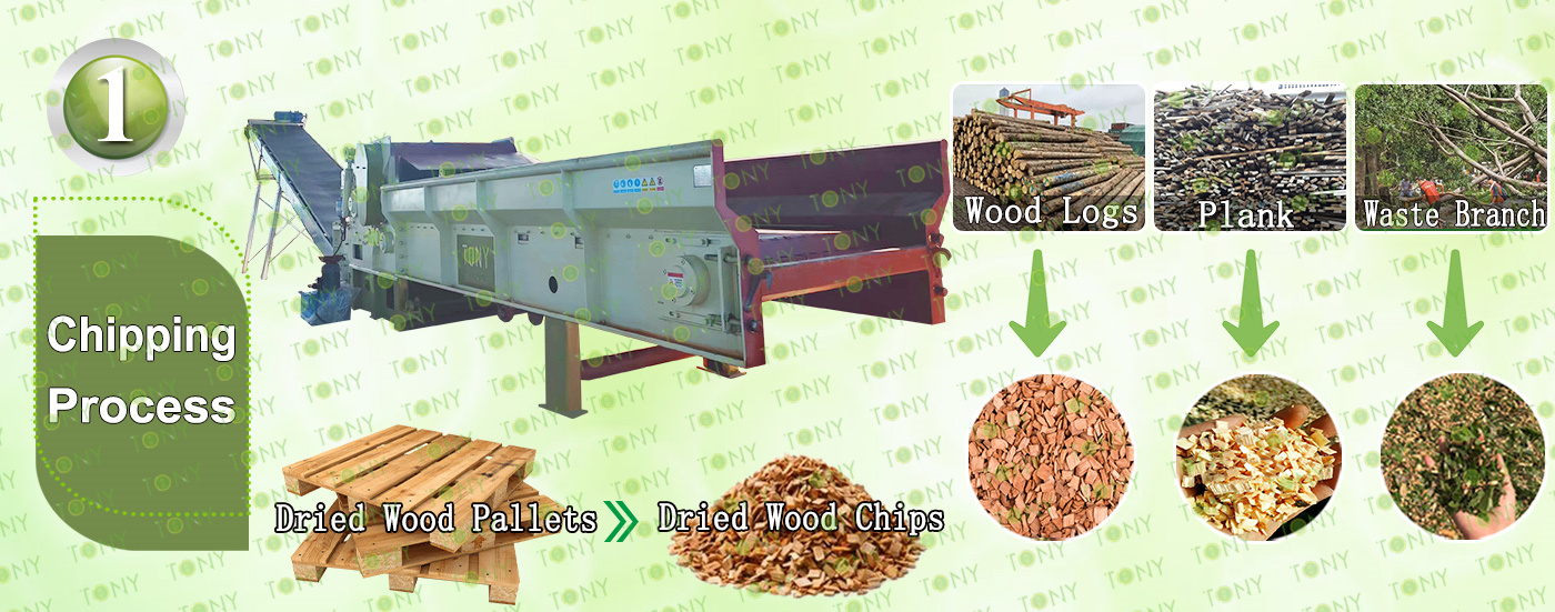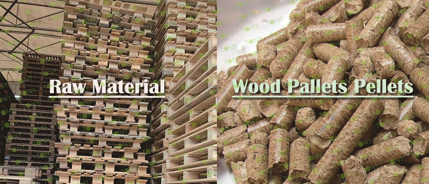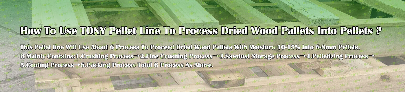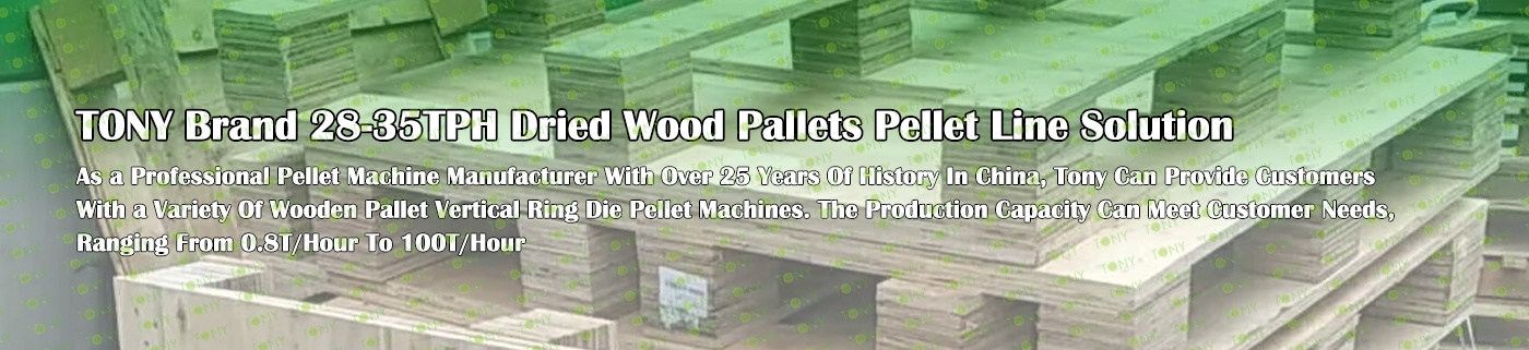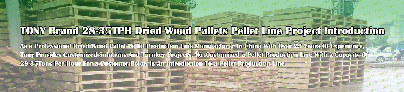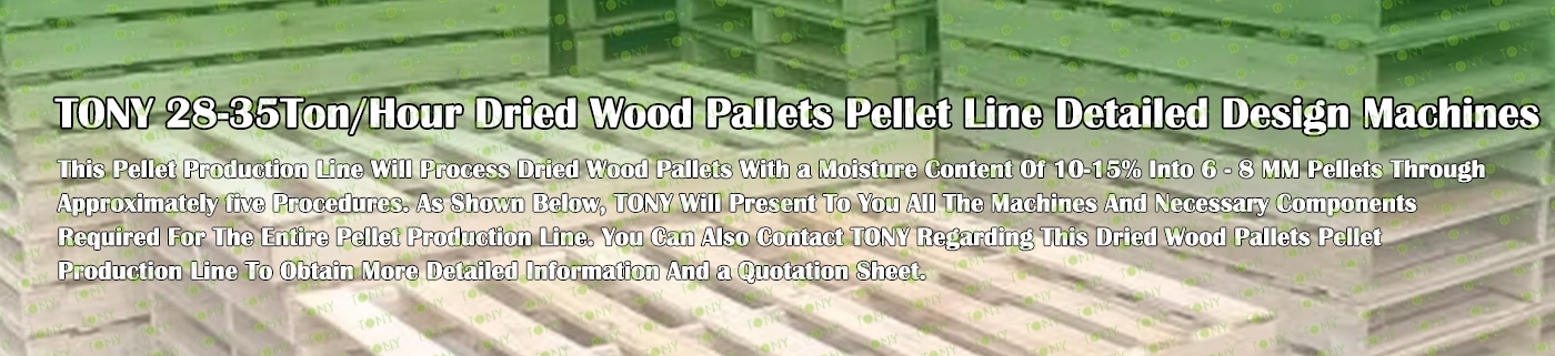 TONY Brand 28-35Ton/Hour Dried Wood Pallets Pellet Manufacturing Plant can take dried wood pallets, various types of wood - related biomass materials, such as branches, small - diameter logs, and wood shavings. After pretreatment and processing, dried wood pallets is solidified into high - density wood pellet fuel.The content of pollutants such as sulfur dioxide and nitrogen oxides produced by biomass pellets during combustion is extremely low, and the dust emission is also low, which can effectively reduce air pollution. Moreover, the raw material sources of biomass pellets are very wide, and the combustion efficiency is high. Compared with traditional fossil energy, it reduces the production and use costs and has higher economic efficiency. It has received a lot of attention and promotion.