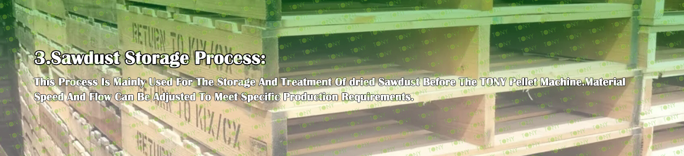 B. TONY brand sawdust storage to storage the sawdust that comes out of the hammer mill.This process can be optional by customer.If customer do not chose the storage bin,he can storage the sawdust on the ground directly which may need some labour.