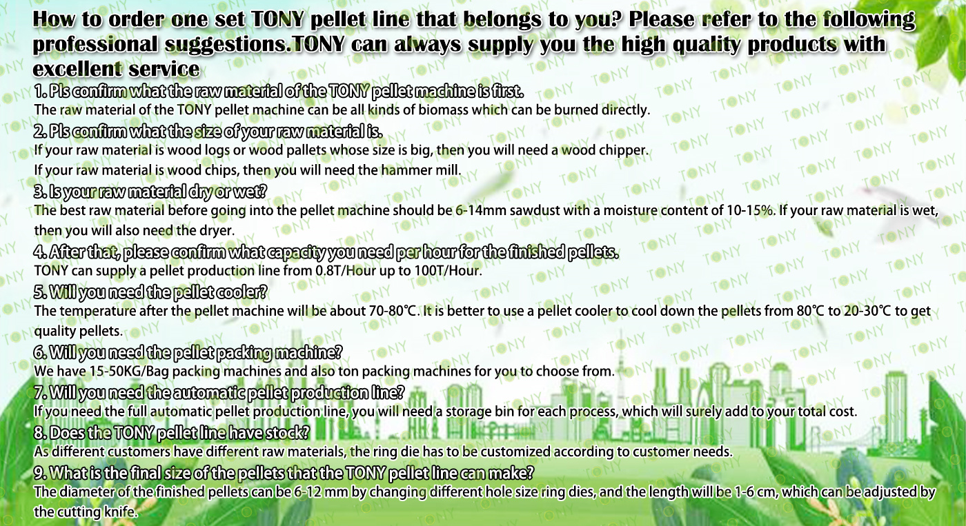 | Next, TONY Will Introduce To You All The Necessary Machinery That Will Be Used For The Whole Pellet Production Line. Some Machines Can Be Custom - Made By Customers According To Different Customers' Detailed Demands. Contact TONY For More Details, Including Quotation And Layout. | ||