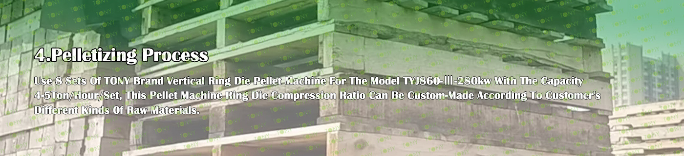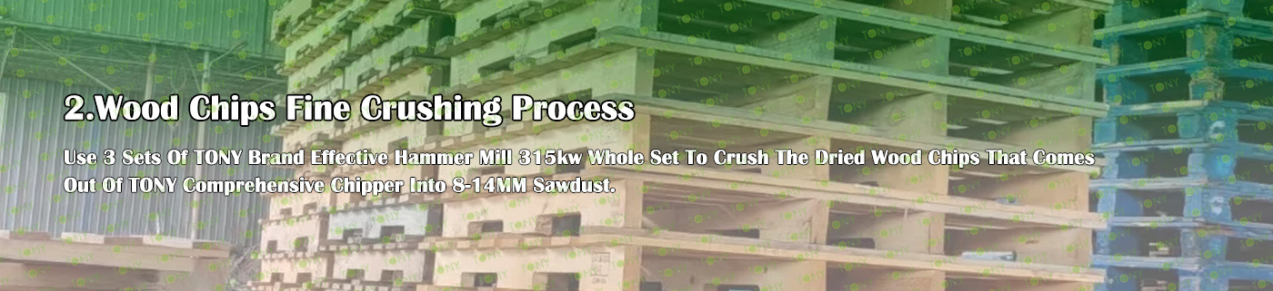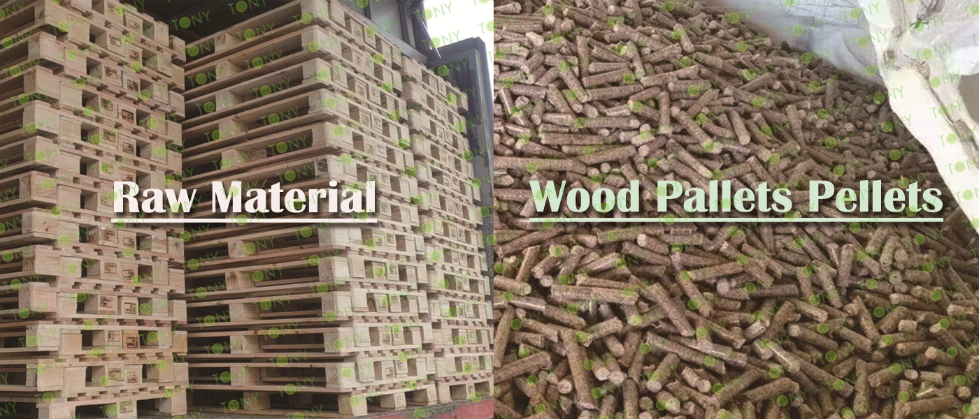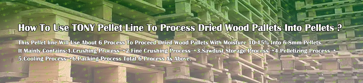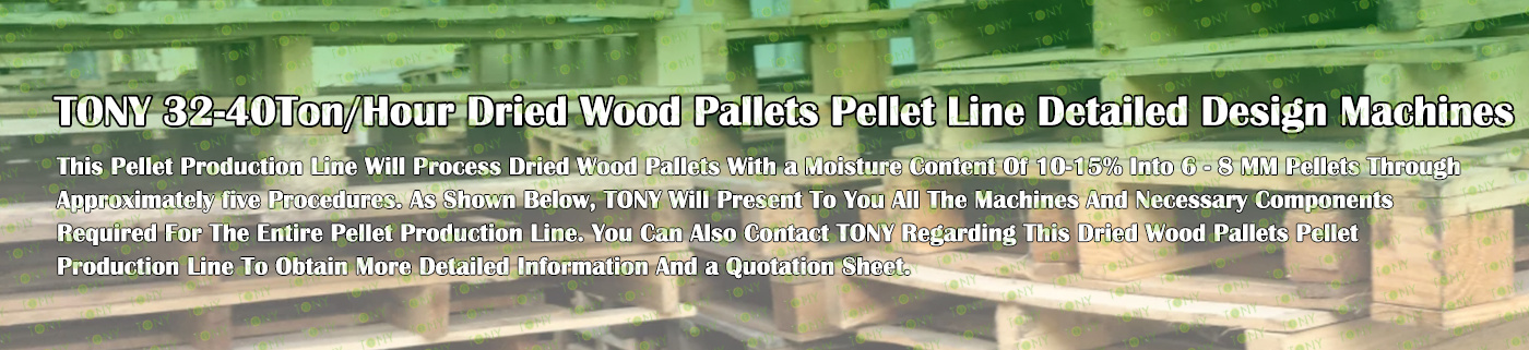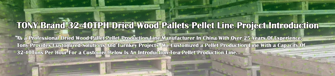 TONY Brand 32-40Ton/Hour Dried Wood Pallets Pellet Manufacturing Plant can take dried wood pallets, various types of wood - related biomass materials, such as branches, small - diameter logs, and wood shavings. After pretreatment and processing, dried wood pallets is solidified into high - density wood pellet fuel.The content of pollutants such as sulfur dioxide and nitrogen oxides produced by biomass pellets during combustion is extremely low, and the dust emission is also low, which can effectively reduce air pollution. Moreover, the raw material sources of biomass pellets are very wide, and the combustion efficiency is high. Compared with traditional fossil energy, it reduces the production and use costs and has higher economic efficiency. It has received a lot of attention and promotion.