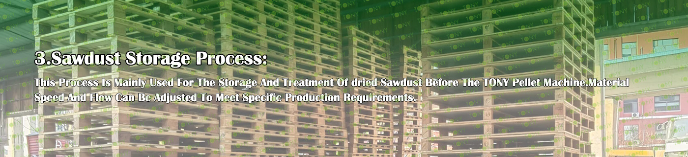 B. TONY brand sawdust storage to storage the sawdust that comes out of the hammer mill.This process can be optional by customer.If customer do not chose the storage bin,he can storage the sawdust on the ground directly which may need some labour.