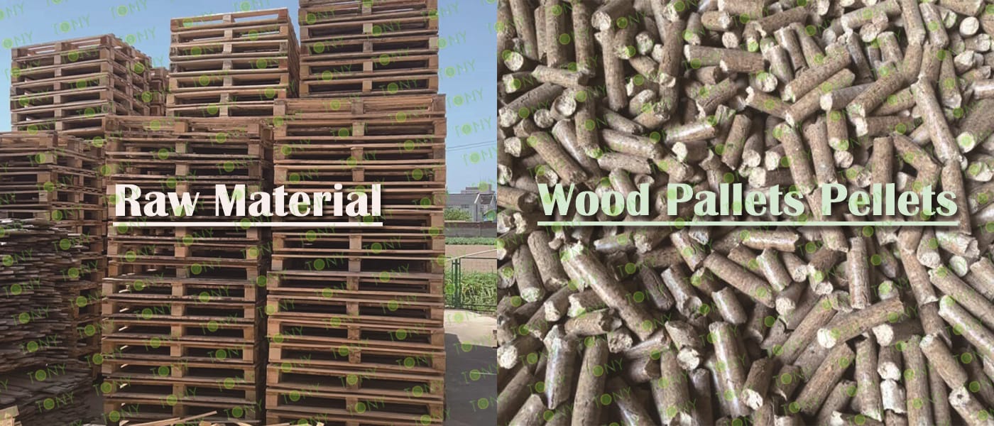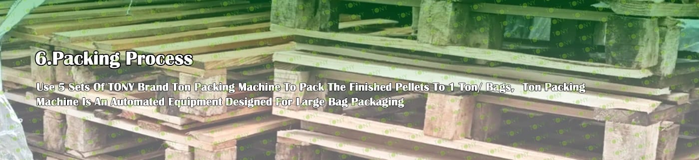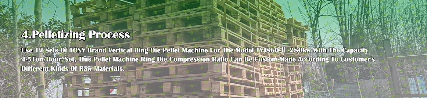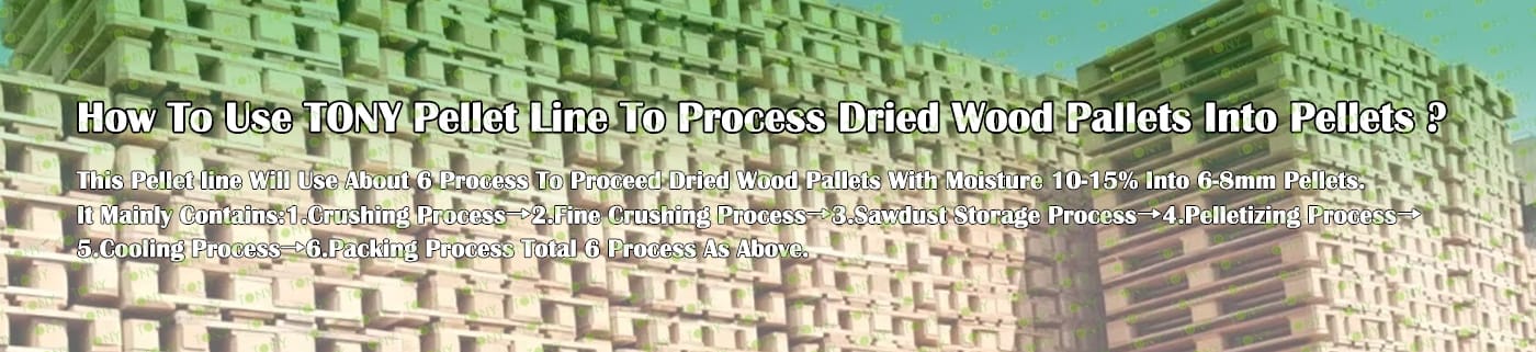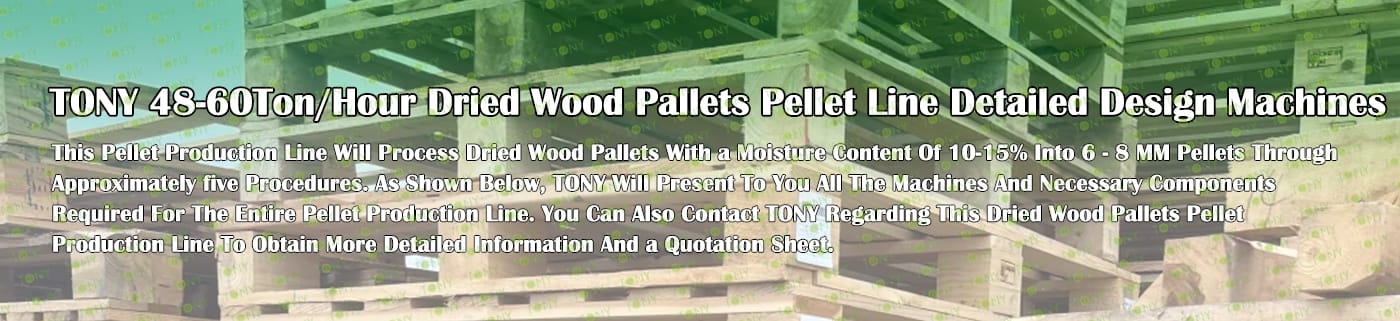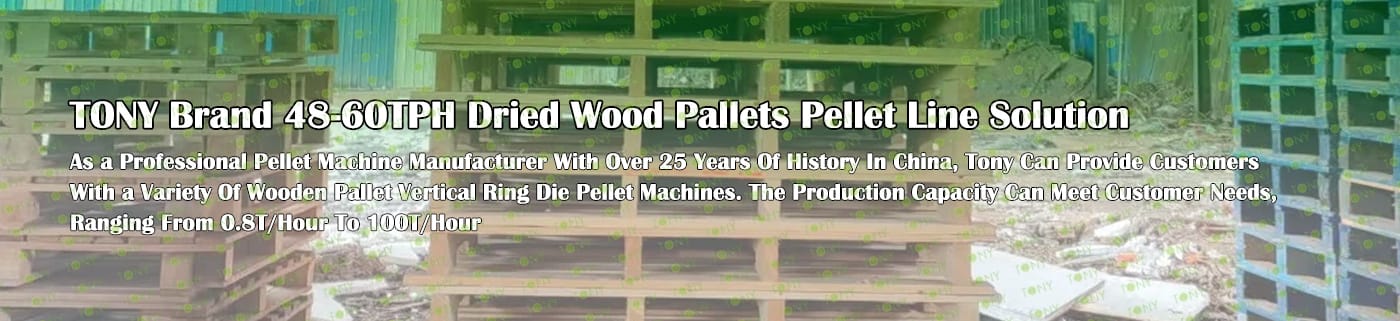TONY Brand 48-60Ton/Hour Dried Wood Pallets Pellet Manufacturing Plant can take dried wood pallets, various types of wood - related biomass materials, such as branches, small - diameter logs, and wood shavings. After pretreatment and processing, dried wood pallets is solidified into high - density wood pellet fuel.The content of pollutants such as sulfur dioxide and nitrogen oxides produced by biomass pellets during combustion is extremely low, and the dust emission is also low, which can effectively reduce air pollution. Moreover, the raw material sources of biomass pellets are very wide, and the combustion efficiency is high. Compared with traditional fossil energy, it reduces the production and use costs and has higher economic efficiency. It has received a lot of attention and promotion.