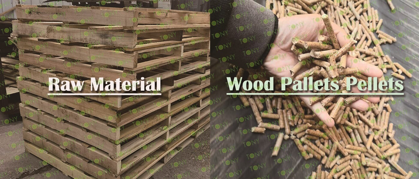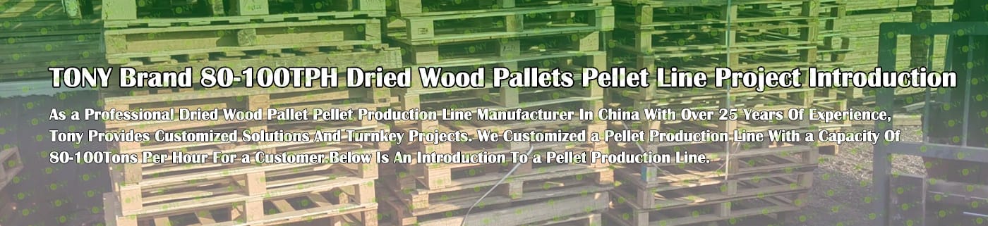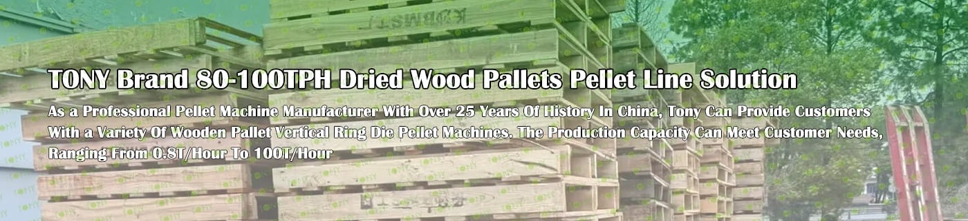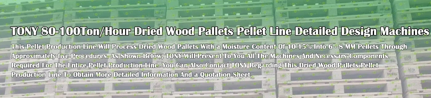 TONY Brand 80-100Ton/Hour Dried Wood Pallets Pellet Manufacturing Plant can take dried wood pallets, various types of wood - related biomass materials, such as branches, small - diameter logs, and wood shavings. After pretreatment and processing, dried wood pallets is solidified into high - density wood pellet fuel.The content of pollutants such as sulfur dioxide and nitrogen oxides produced by biomass pellets during combustion is extremely low, and the dust emission is also low, which can effectively reduce air pollution. Moreover, the raw material sources of biomass pellets are very wide, and the combustion efficiency is high. Compared with traditional fossil energy, it reduces the production and use costs and has higher economic efficiency. It has received a lot of attention and promotion.