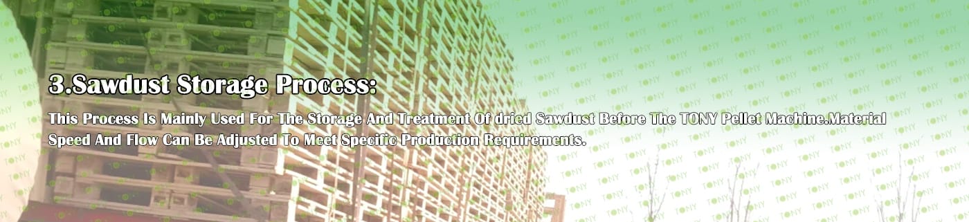 B. TONY brand sawdust storage to storage the sawdust that comes out of the hammer mill.This process can be optional by customer.If customer do not chose the storage bin,he can storage the sawdust on the ground directly which may need some labour.