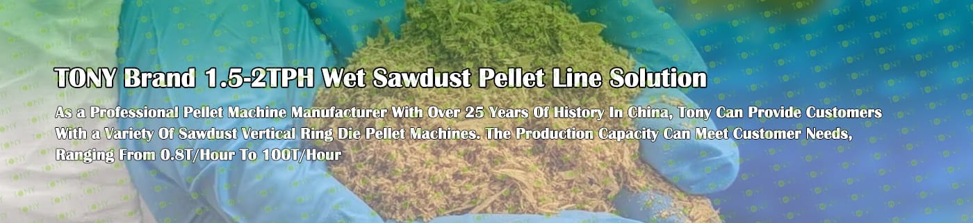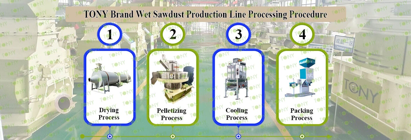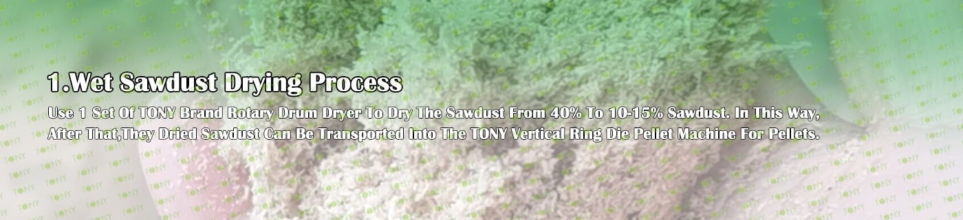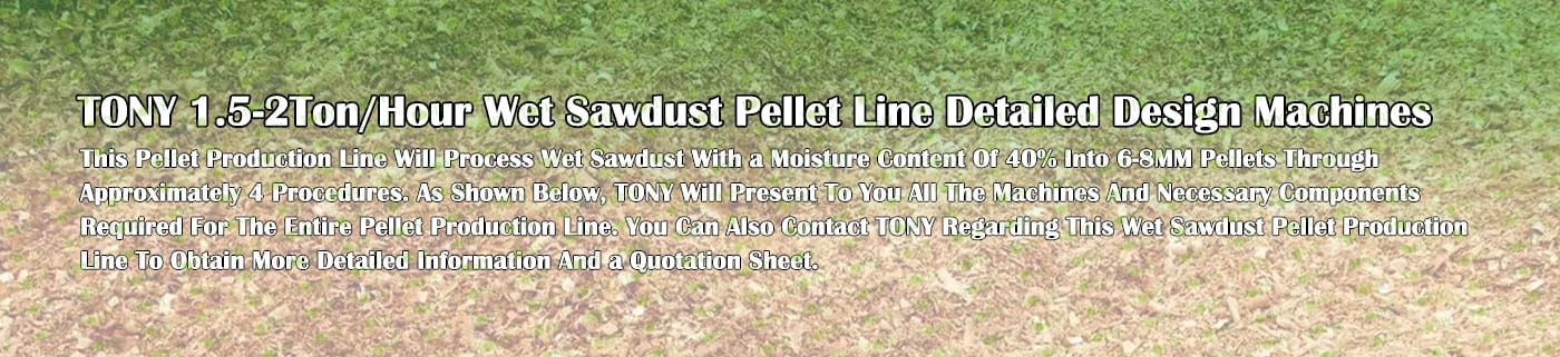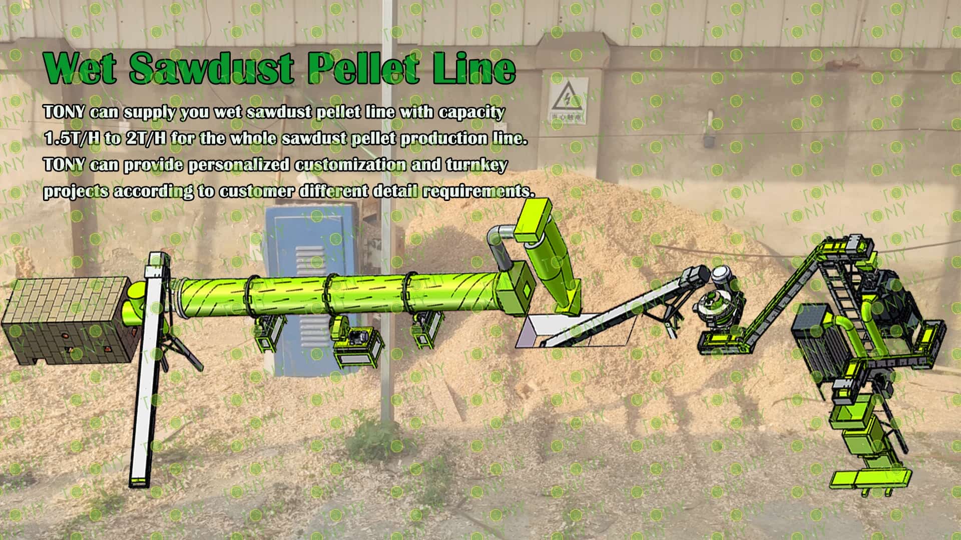 3.TONY Brand 1.5-2Ton /Hour Wet Sawdust Pellet Line Project Process