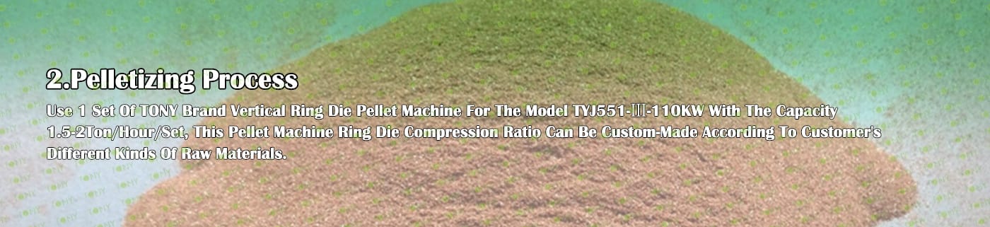 4.Main Machine: Rotary Drum Dryer,TONY Pellet Machine TYJ551-Ⅲ-110KW,Pellets Cooler,Packing Machine And Belt Conveyors