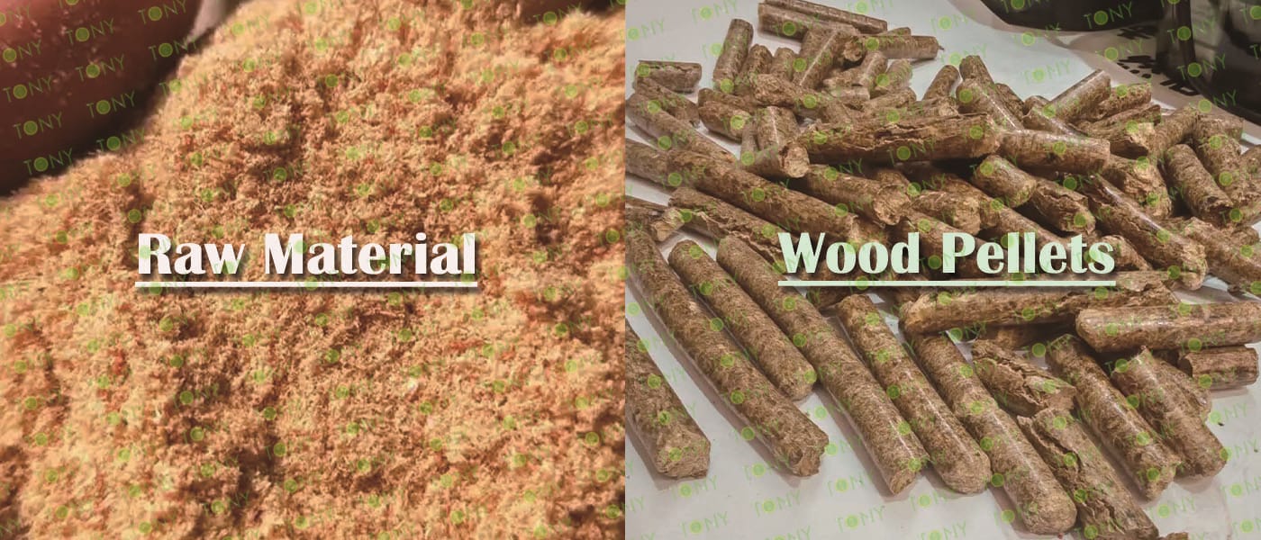 TONY Brand 1.5-2Ton/Hour Wet Sawdust Pellet Manufacturing Plant can take wet sawdust,wood chips, various types of wood - related biomass materials, such as wood pallets ,branches, wood logs, and wood shavings. After pretreatment and processing, wet sawdust is solidified into high - density wood pellet fuel. This fuel is an ideal substitute for coal and oil and plays a role in energy conservation and emission reduction.