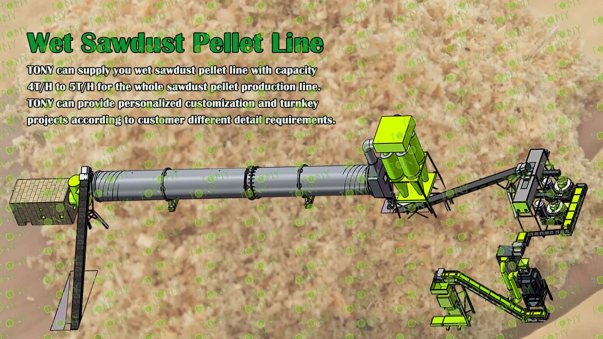 3.TONY Brand 4-5 Ton /Hour Wet Sawdust Pellet Line Project Process