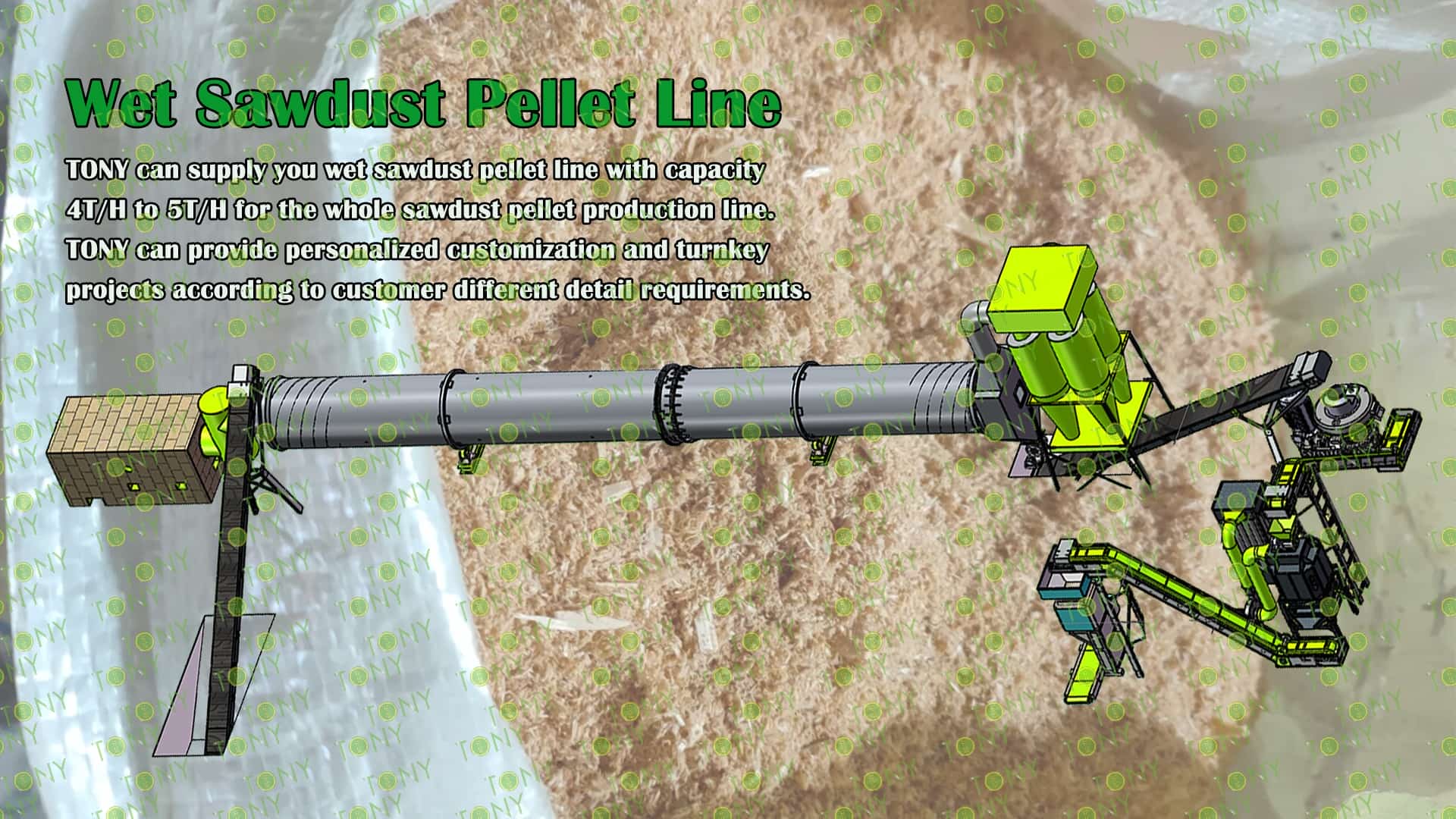 3.TONY Brand 4-5 Ton /Hour Wet Sawdust Pellet Line Project Process