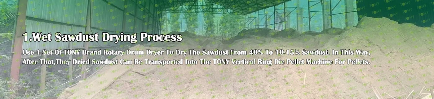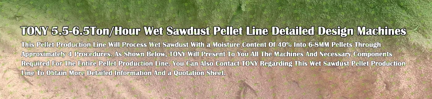 3.TONY Brand 5.5-6.5Ton /Hour Wet Sawdust Pellet Line Project Process