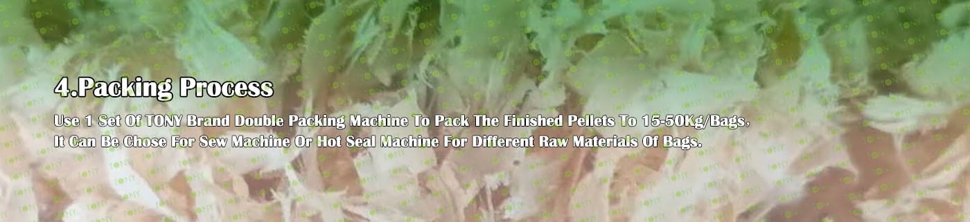 4.Main Machine: Rotary Drum Dryer,TONY Pellet Machine TYJ760-Ⅲ-185KW,Pellets Cooler,Packing Machine And Belt Conveyors