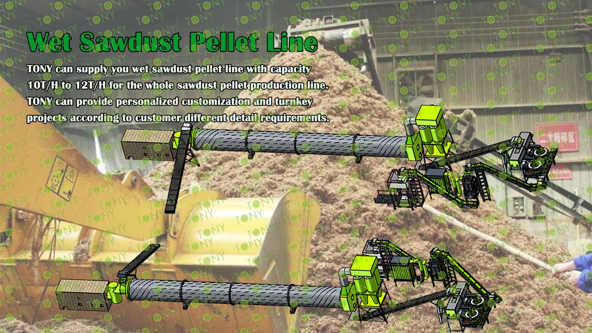 3.TONY Brand 10-12 Ton /Hour Wet Sawdust Pellet Line Project Process