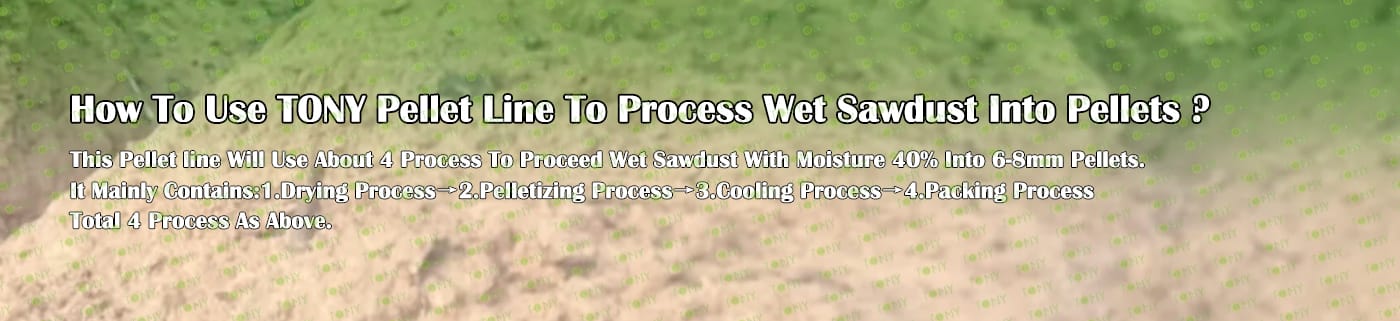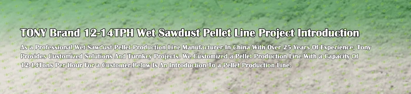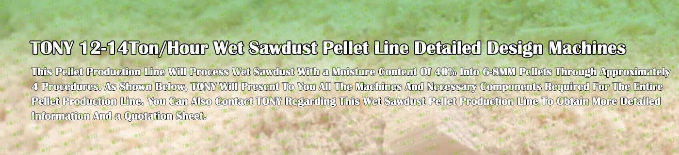 TONY Brand 12-14Ton/Hour Wet Sawdust Pellet Manufacturing Plant can take wet sawdust,wood chips, various types of wood - related biomass materials, such as wood pallets,branches, wood logs, and wood shavings. After pretreatment and processing, wet sawdust is solidified into high - density wood pellet fuel. This fuel is an ideal substitute for coal and oil and plays a role in energy conservation and emission reduction.