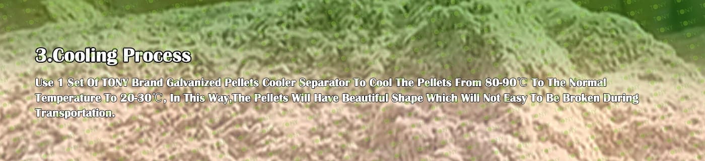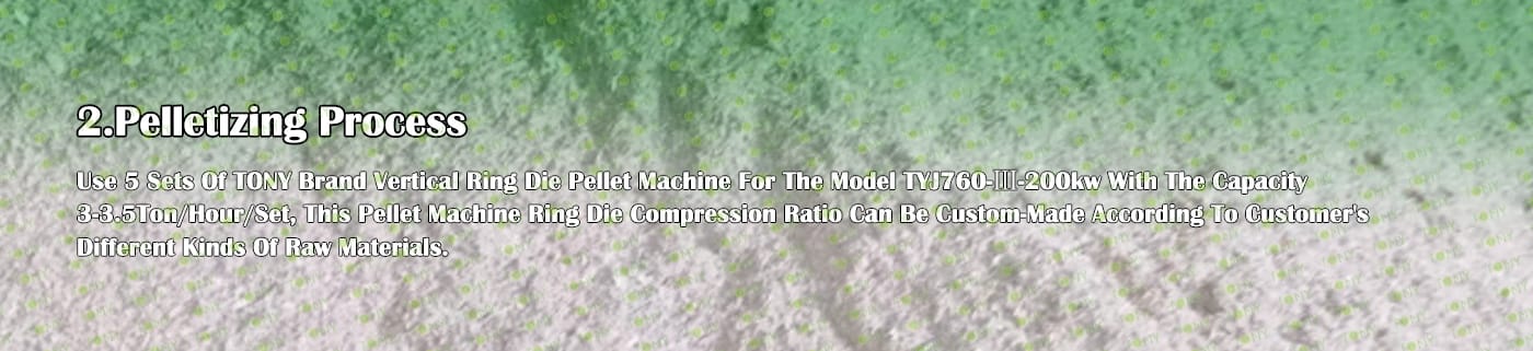 4.Main Machine: Rotary Drum Dryer,TONY Pellet Machine TYJ760-Ⅲ-200KW,Pellets Cooler,Packing Machine And Belt Conveyors