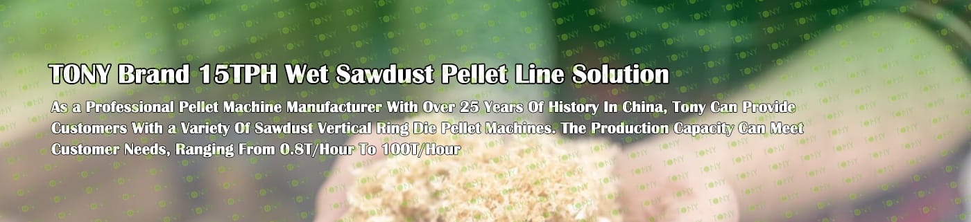 TONY Brand 15Ton/Hour Wet Sawdust Pellet Manufacturing Plant can take wet sawdust,wood chips, various types of wood - related biomass materials, such as wood pallets,branches, wood logs, and wood shavings. After pretreatment and processing, wet sawdust is solidified into high - density wood pellet fuel. This fuel is an ideal substitute for coal and oil and plays a role in energy conservation and emission reduction.