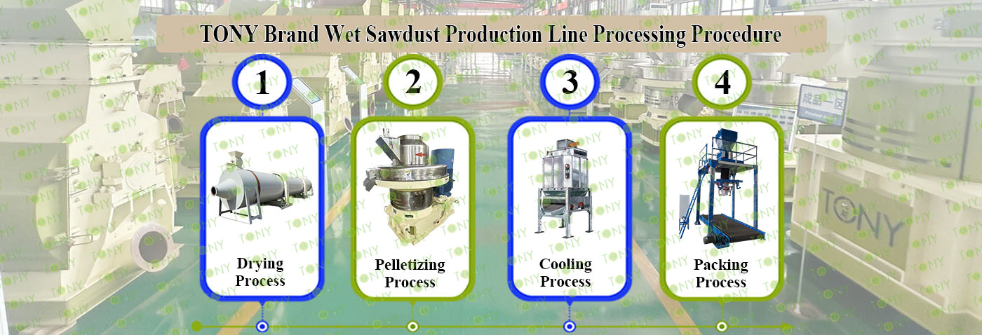 3.TONY Brand 18Ton /Hour Wet Sawdust Pellet Line Project Process