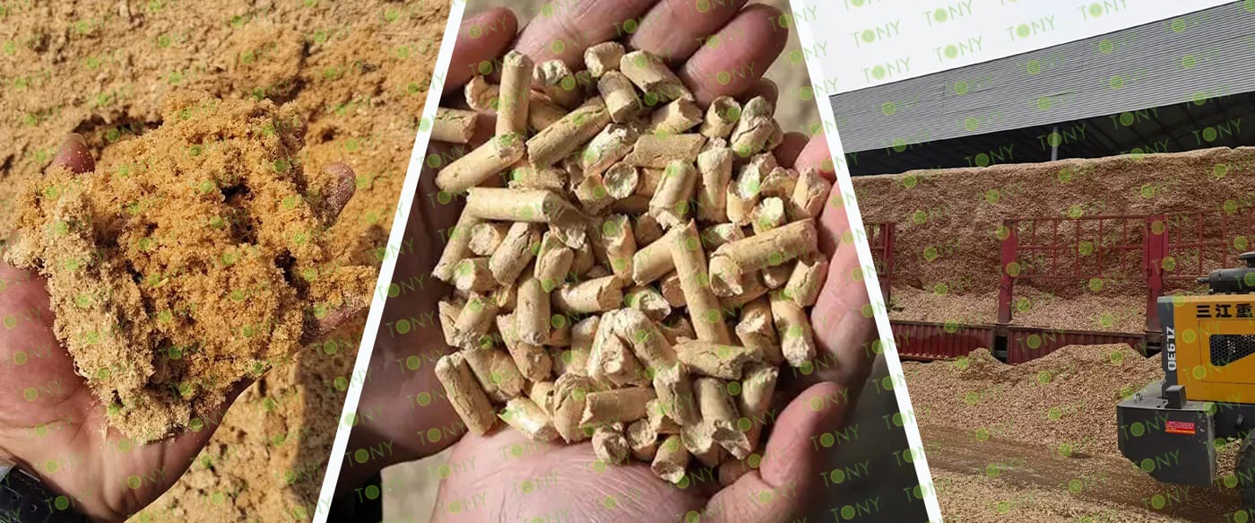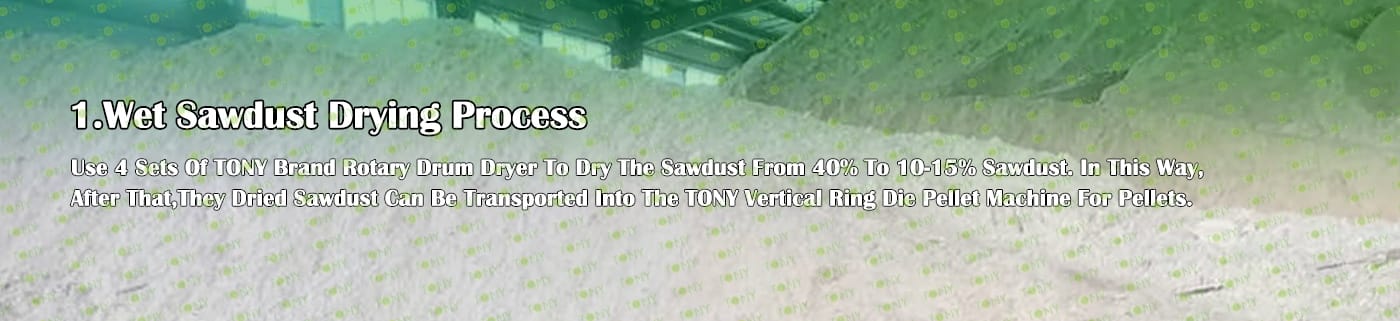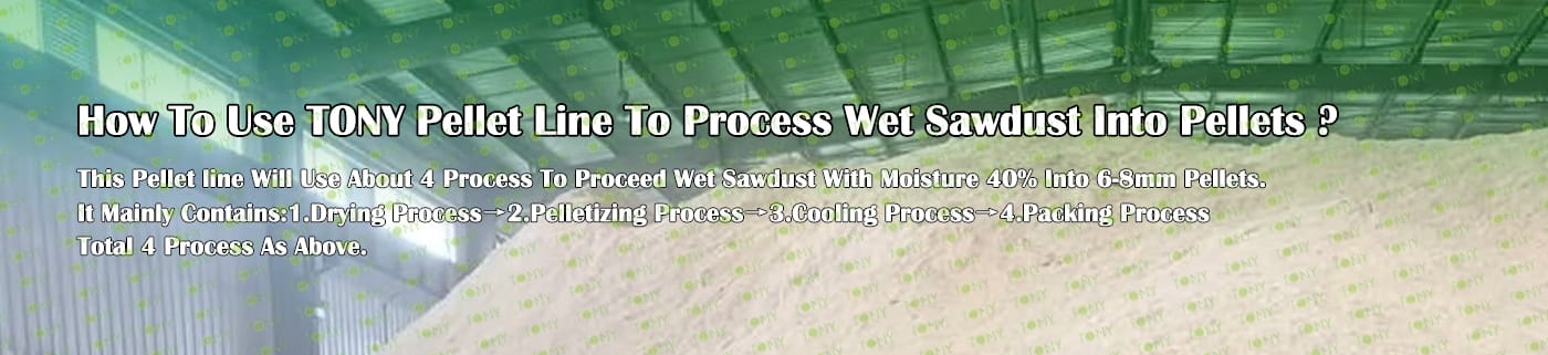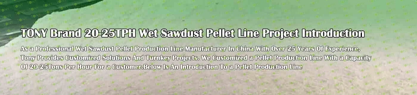 TONY Brand 20-25Ton/Hour Wet Sawdust Pellet Manufacturing Plant can take wet sawdust,wood chips, various types of wood - related biomass materials, such as wood pallets ,branches, wood logs, and wood shavings. After pretreatment and processing, wet sawdust is solidified into high - density wood pellet fuel. This fuel is an ideal substitute for coal and oil and plays a role in energy conservation and emission reduction.