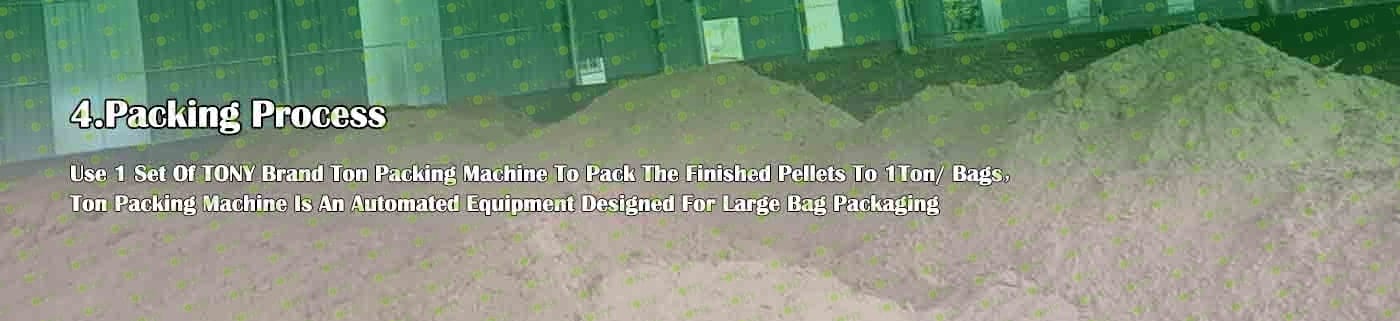 6. Main Equipment: Rotary Drum Dryer-2.2*24m, TONY Pellet Machine TYJ860-Ⅲ-280KW, Galvanized Pellets Cooler, Ton Packing Machine and Belt Conveyors