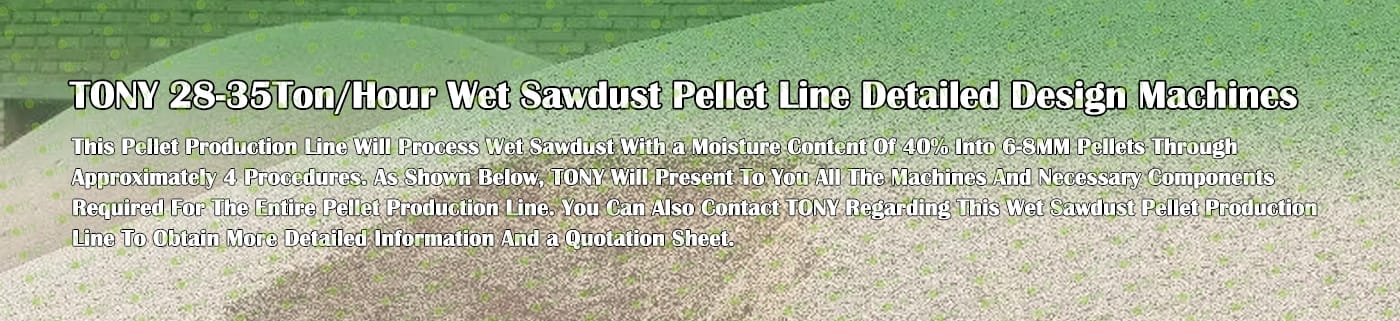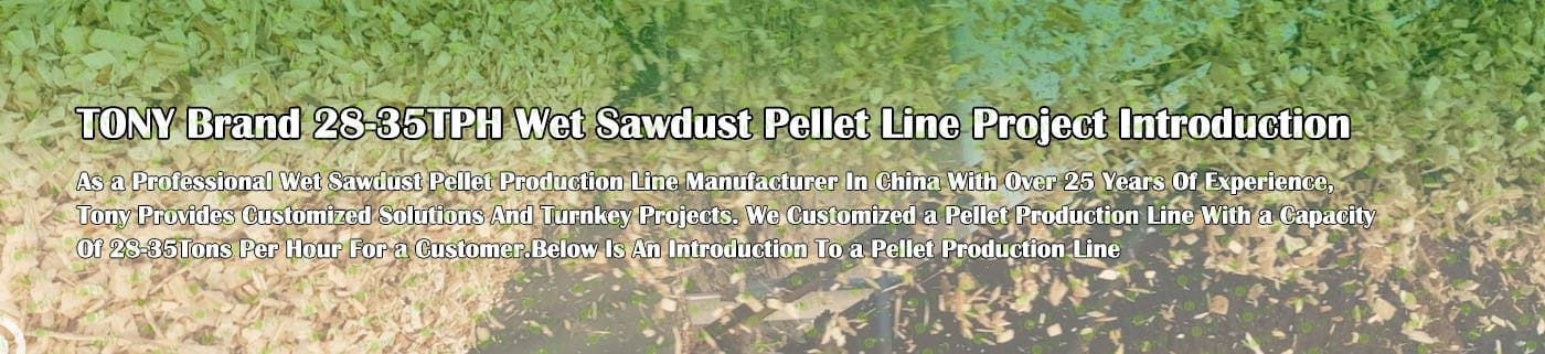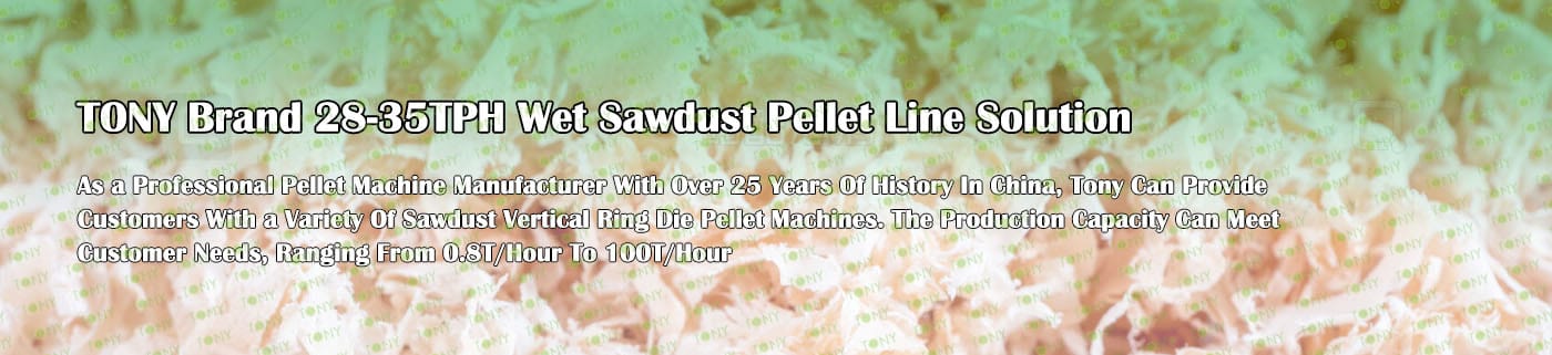 TONY Brand 28-35Ton/Hour Wet Sawdust Pellet Manufacturing Plant can take wet sawdust,wood chips, various types of wood - related biomass materials, such as wood pallets ,branches, wood logs, and wood shavings. After pretreatment and processing, wet sawdust is solidified into high - density wood pellet fuel. This fuel is an ideal substitute for coal and oil and plays a role in energy conservation and emission reduction.