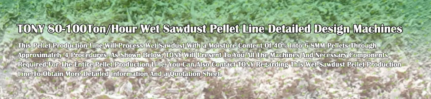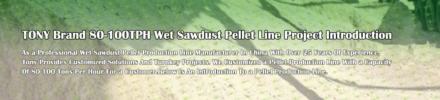 TONY Brand 80-100Ton/Hour Wet Sawdust Pellet Manufacturing Plant can take wet sawdust,wood chips, various types of wood - related biomass materials, such as wood pallets ,branches, wood logs, and wood shavings. After pretreatment and processing, wet sawdust is solidified into high - density wood pellet fuel. This fuel is an ideal substitute for coal and oil and plays a role in energy conservation and emission reduction.