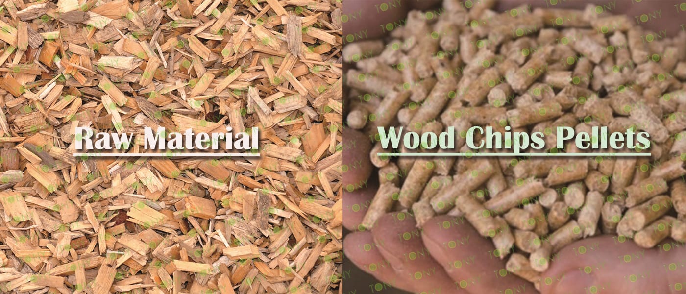 TONY Brand 0.8-1.2Ton/Hour Wet Wood Chips Pellet Manufacturing Plant can take wet wood chips, various types of wood - related biomass materials, such as wood pallets ,branches, wood logs, and wood shavings. After pretreatment and processing, wet wood chips is solidified into high - density wood pellet fuel. This fuel is an ideal substitute for coal and oil and plays a role in energy conservation and emission reduction. At present, it has been widely used in regions rich in wood resources.