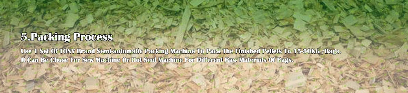 4.Main Machine: Hammer Mill, Rotary Drum Dryer,TONY Pellet Machine TYJ450-Ⅱ-55KW,Pellets Cooler,Packing Machine And Belt Conveyors