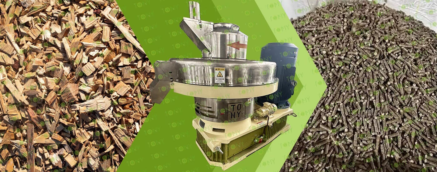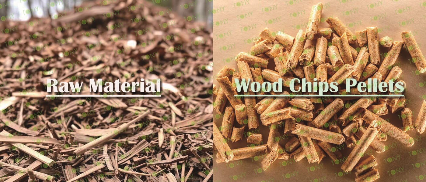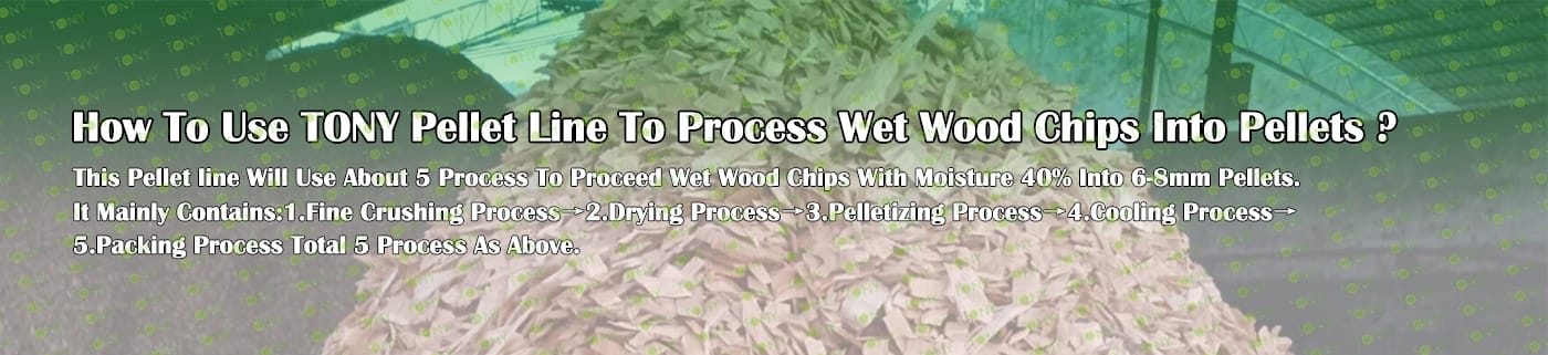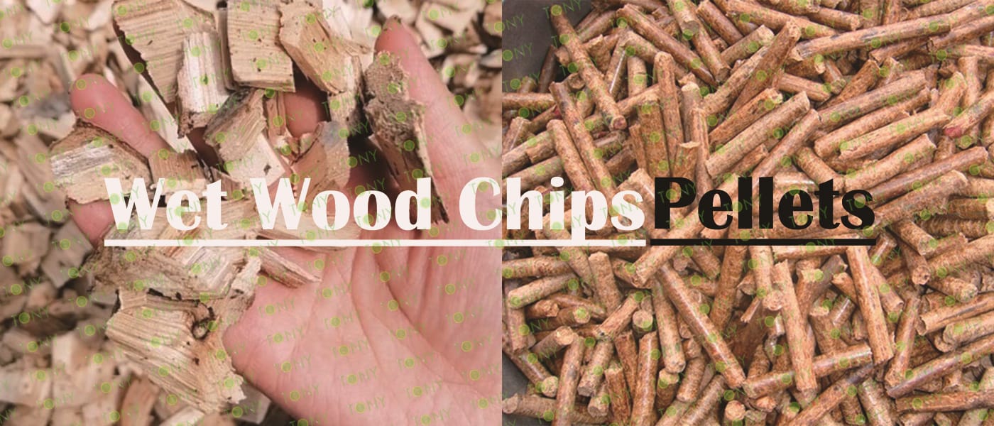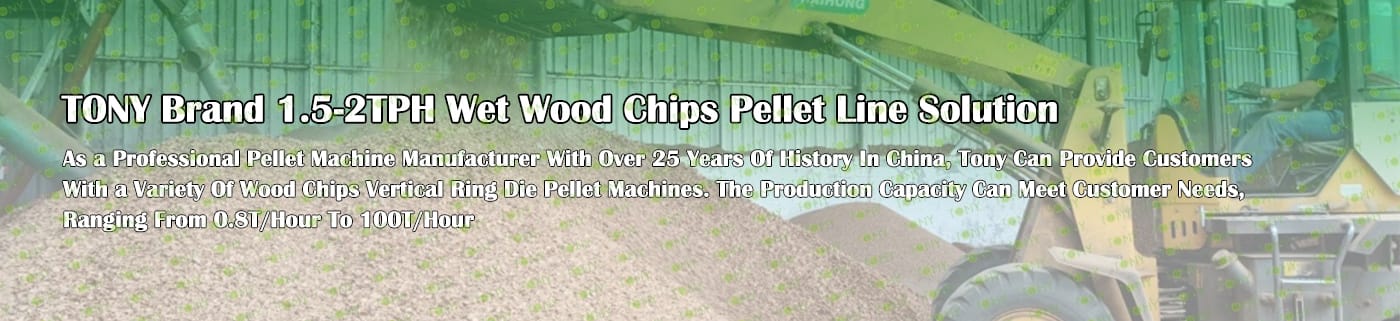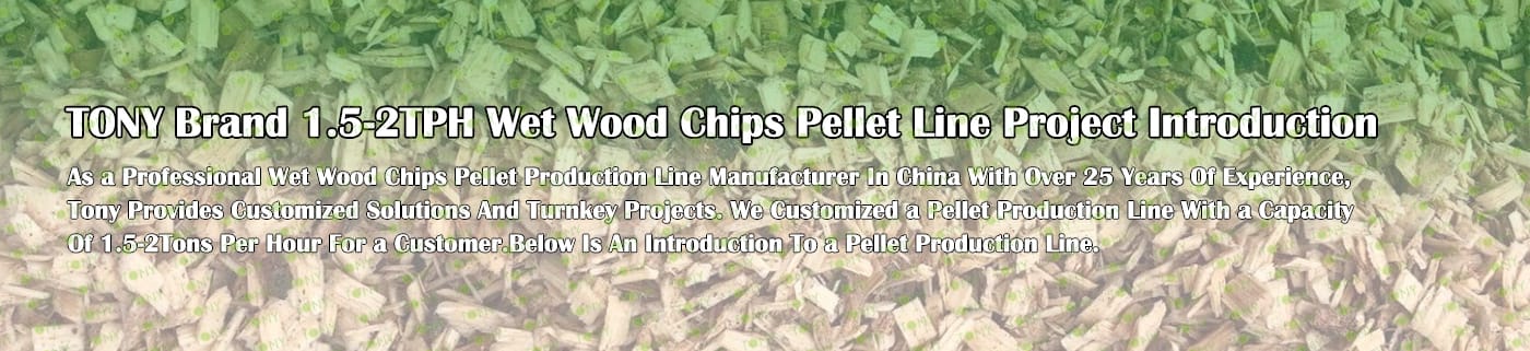 TONY Brand 1.5-2Ton/Hour Wet Wood Chips Pellet Manufacturing Plant can take wet wood chips, various types of wood - related biomass materials, such as wood pallets ,branches, wood logs, and wood shavings. After pretreatment and processing, wet wood chips is solidified into high - density wood pellet fuel. This fuel is an ideal substitute for coal and oil and plays a role in energy conservation and emission reduction. At present, it has been widely used in regions rich in wood resources.