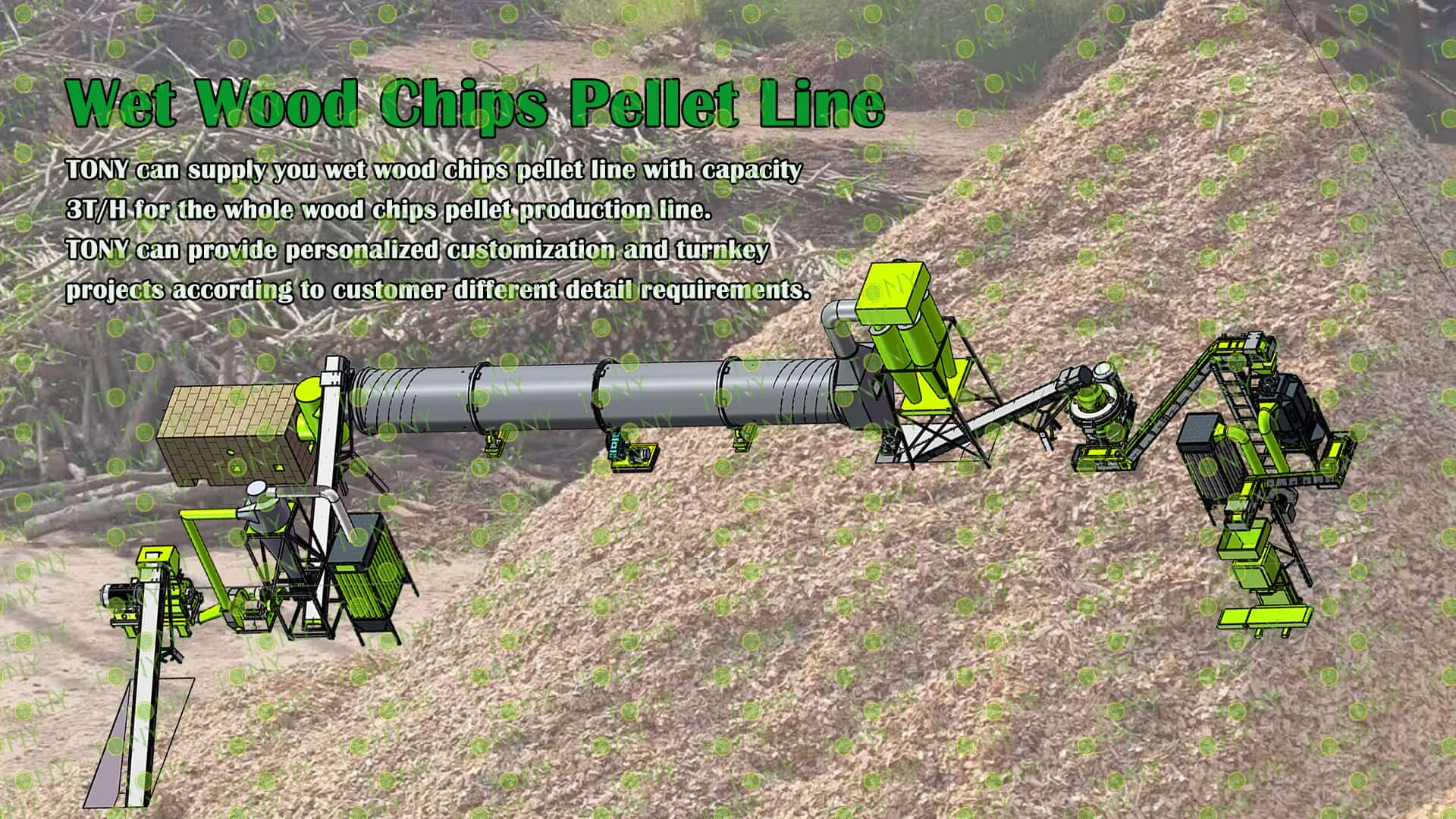 3.TONY Brand 3Ton /Hour Wet Wood Chips Pellet Line Project Process