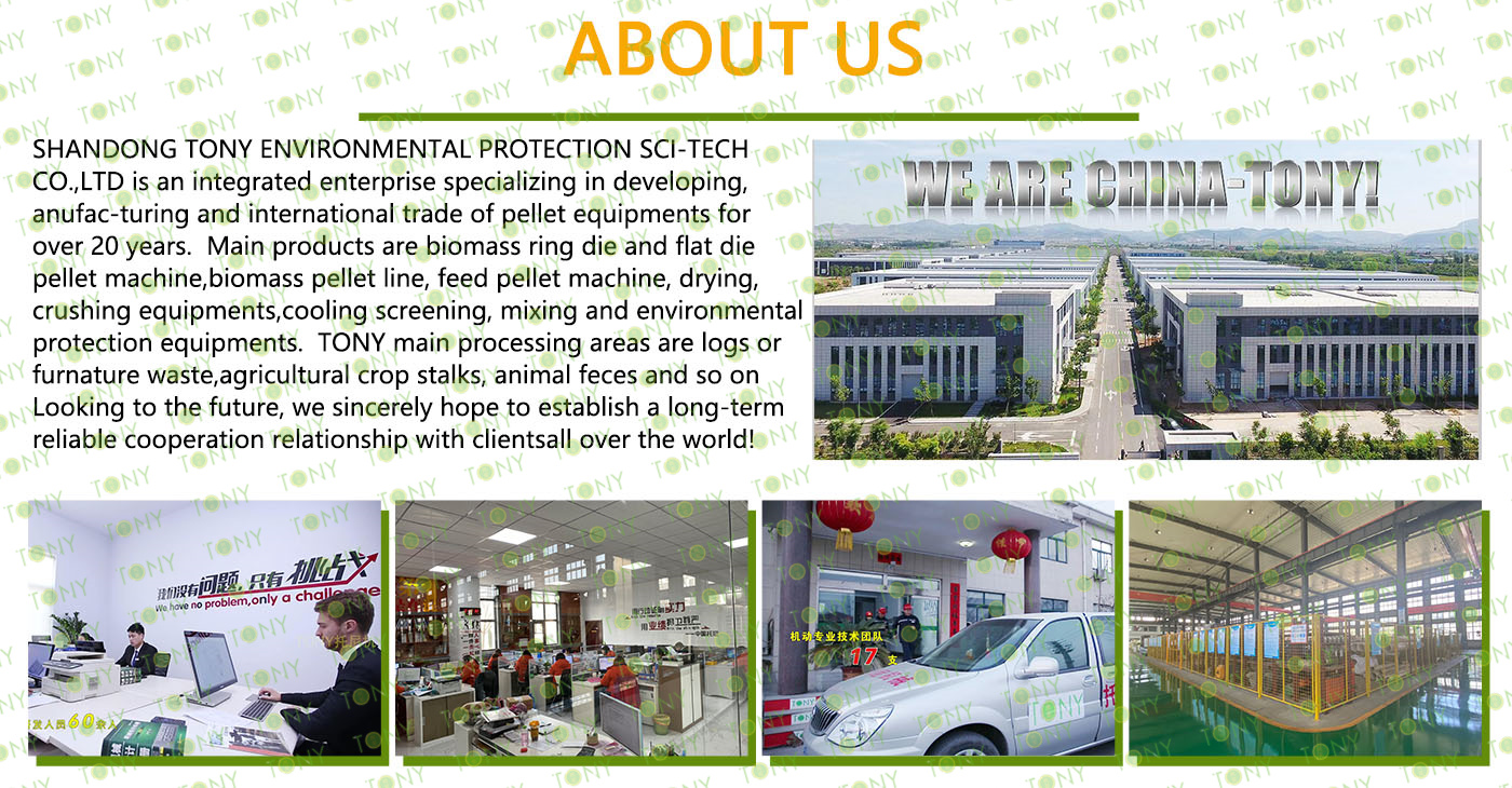 4.Main Machine: Hammer Mill, Rotary Drum Dryer,TONY Pellet Machine TYJ760-Ⅲ-200KW,Pellets Cooler,Packing Machine And Belt Conveyors