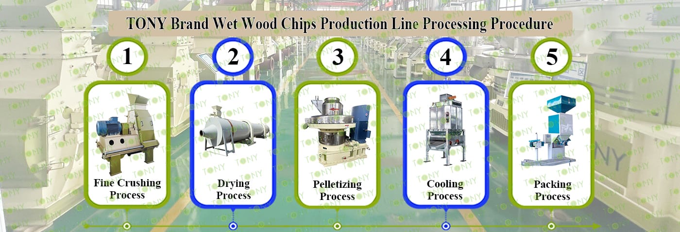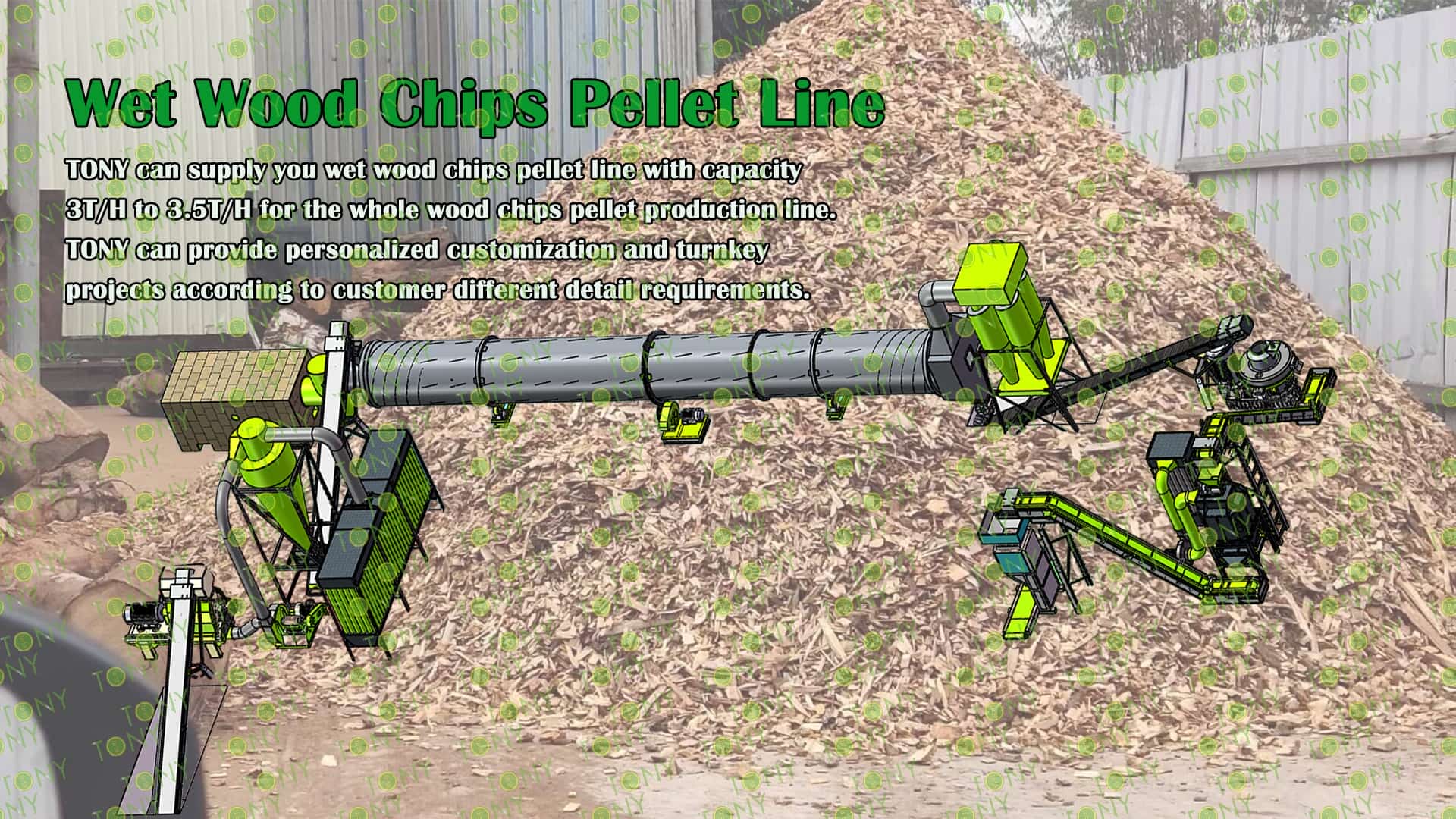 3.TONY Brand 3-3.5Ton /Hour Wet Wood Chips Pellet Line Project Process