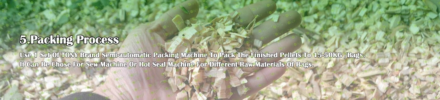 6. Main Equipment: Effective Hammer Mill-TFD75*100-110KW, Rotary Drum Dryer-1.8*18m, TONY Pellet Machine TYJ860-Ⅲ-220KW, Pellet Cooler, Semi-automatic Packing Machine and Belt Conveyors