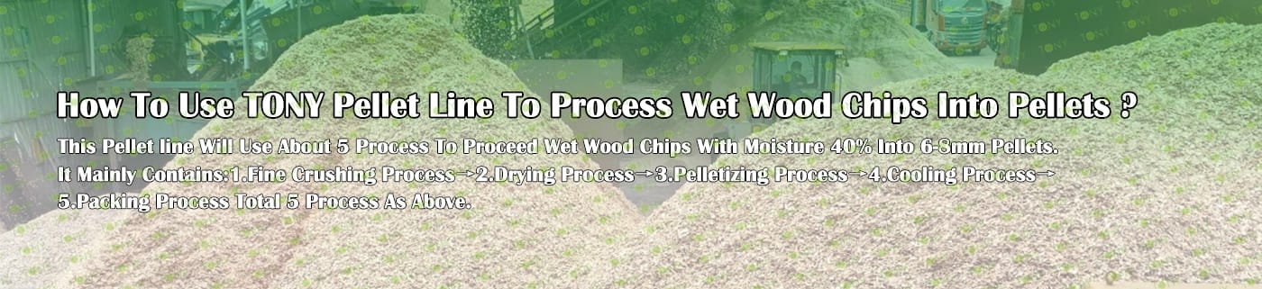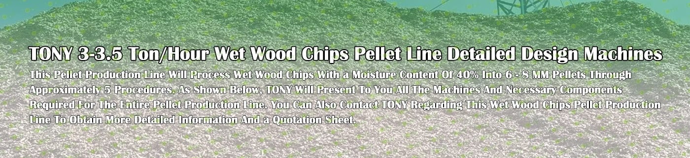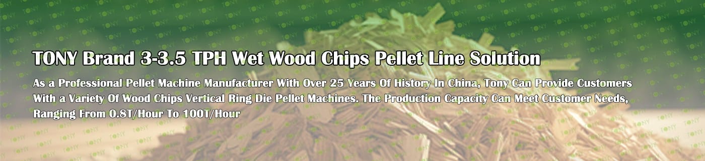 TONY Brand 3-3.5Ton/Hour Wet Wood Chips Pellet Manufacturing Plant can take wet wood chips, various types of wood - related biomass materials, such as wood pallets ,branches, wood logs, and wood shavings. After pretreatment and processing, wet wood chips is solidified into high - density wood pellet fuel. This fuel is an ideal substitute for coal and oil and plays a role in energy conservation and emission reduction. At present, it has been widely used in regions rich in wood resources.