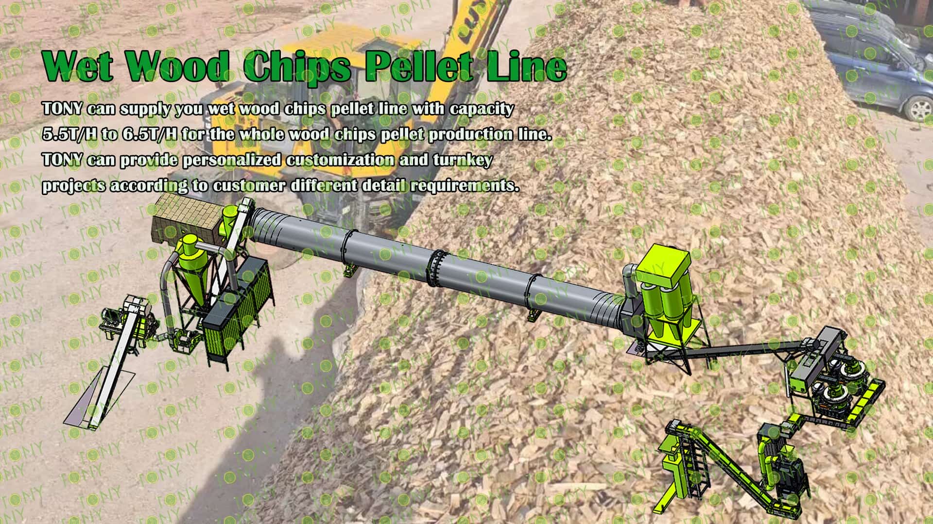 3.TONY Brand 5.5-6.5Ton /Hour Wet Wood Chips Pellet Line Project Process