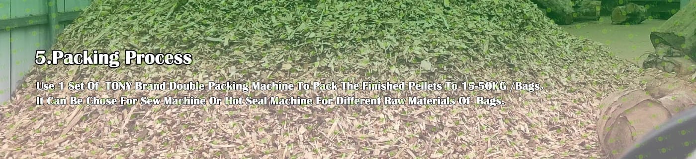 4.Main Machine: Hammer Mill, Rotary Drum Dryer,TONY Pellet Machine TYJ760-Ⅲ-185KW,Pellets Cooler,Packing Machine And Belt Conveyors