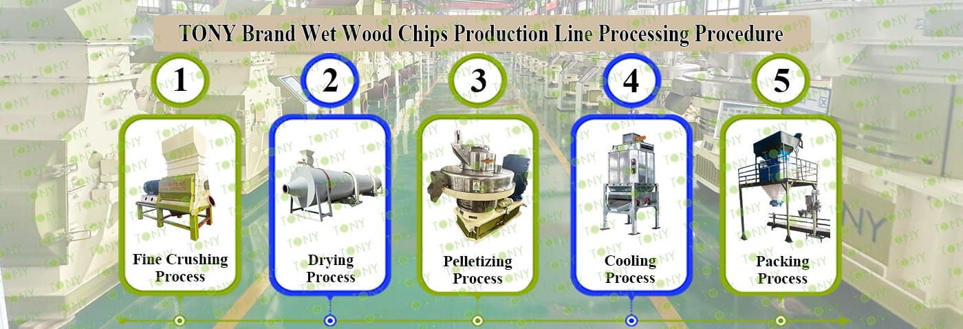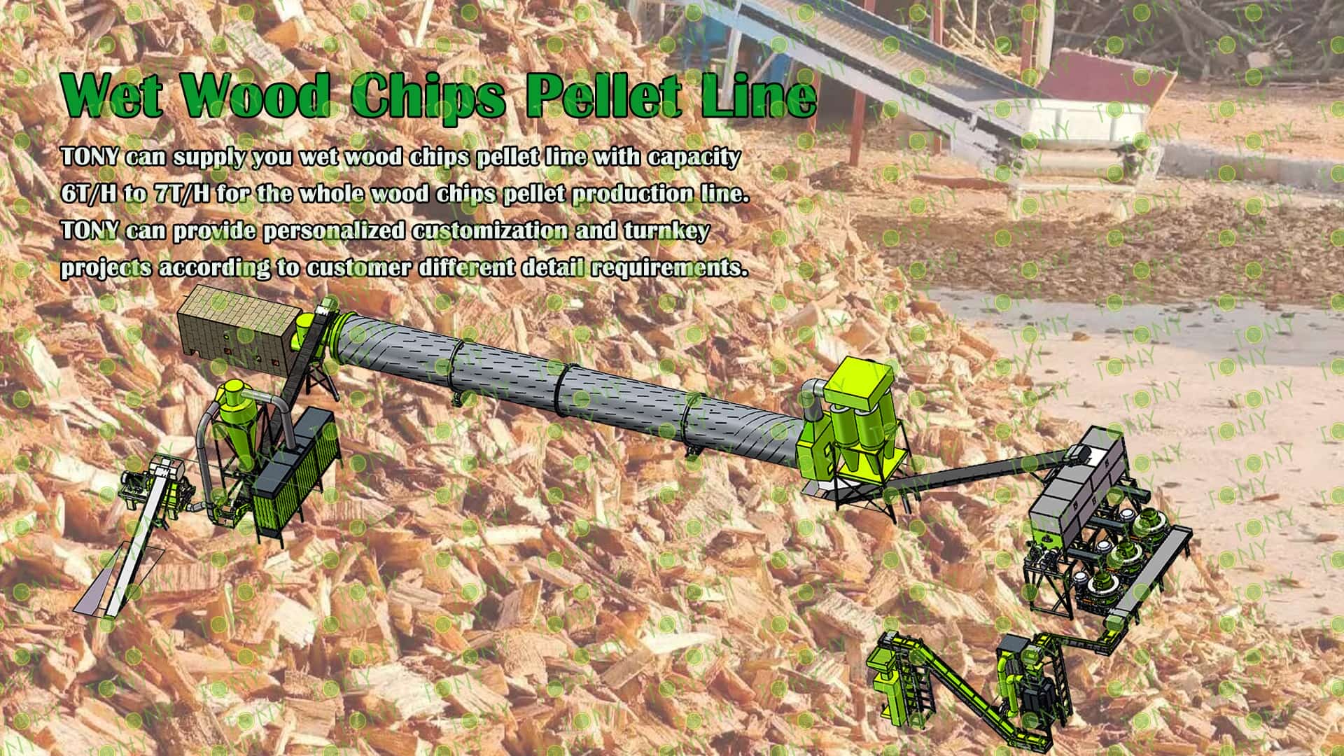 3.TONY Brand 6-7Ton /Hour Wet Wood Chips Pellet Line Project Process