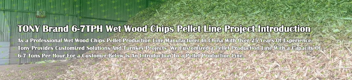 TONY Brand 6-7Ton/Hour Wet Wood Chips Pellet Manufacturing Plant can take wet wood chips, various types of wood - related biomass materials, such as wood pallets ,branches, wood logs, and wood shavings. After pretreatment and processing, wet wood chips is solidified into high - density wood pellet fuel. This fuel is an ideal substitute for coal and oil and plays a role in energy conservation and emission reduction. At present, it has been widely used in regions rich in wood resources.
