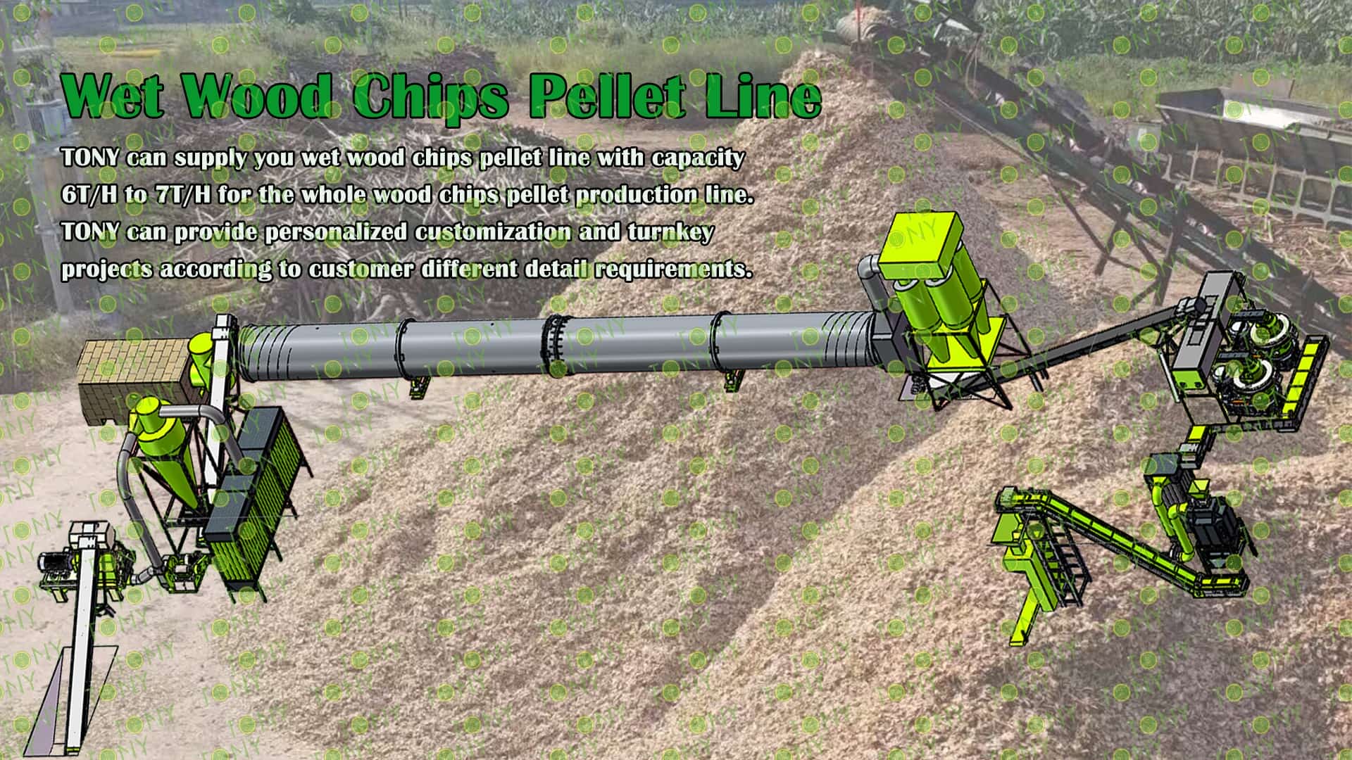 3.TONY Brand 6-7Ton /Hour Wet Wood Chips Pellet Line Project Process