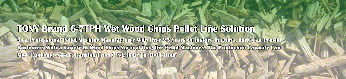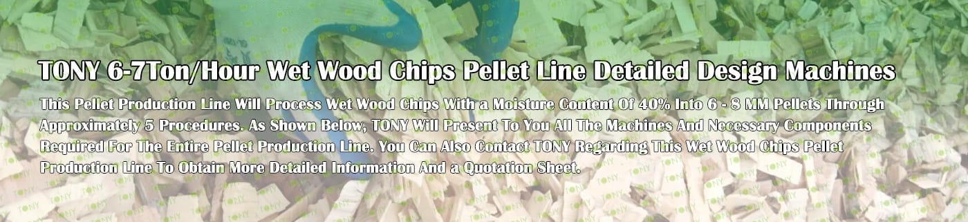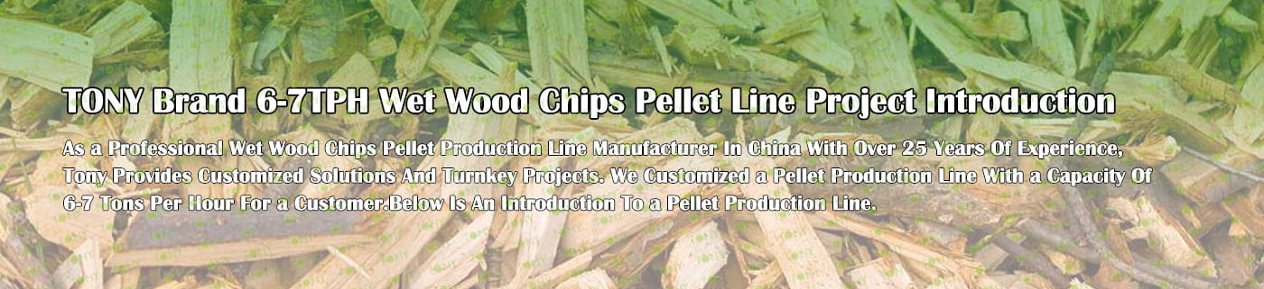 TONY Brand 6-7Ton/Hour Wet Wood Chips Pellet Manufacturing Plant can take wet wood chips, various types of wood - related biomass materials, such as wood pallets ,branches, wood logs, and wood shavings. After pretreatment and processing, wet wood chips is solidified into high - density wood pellet fuel. This fuel is an ideal substitute for coal and oil and plays a role in energy conservation and emission reduction. At present, it has been widely used in regions rich in wood resources.