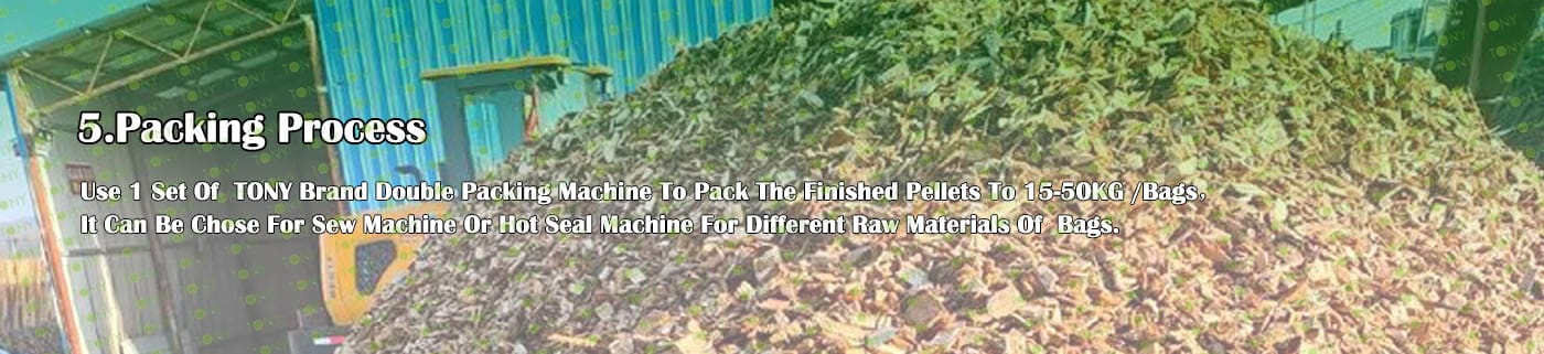 4.Main Machine: Hammer Mill, Rotary Drum Dryer,TONY Pellet Machine TYJ860-Ⅲ-220KW,Pellets Cooler,Packing Machine And Belt Conveyors