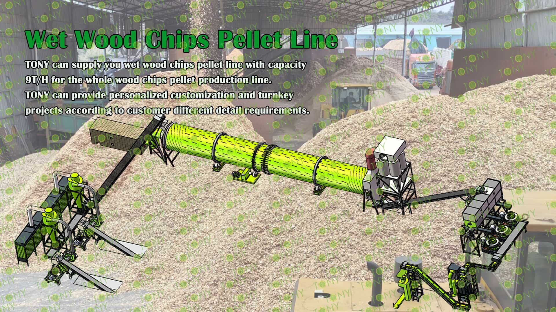 3.TONY Brand 9Ton /Hour Wet Wood Chips Pellet Line Project Process