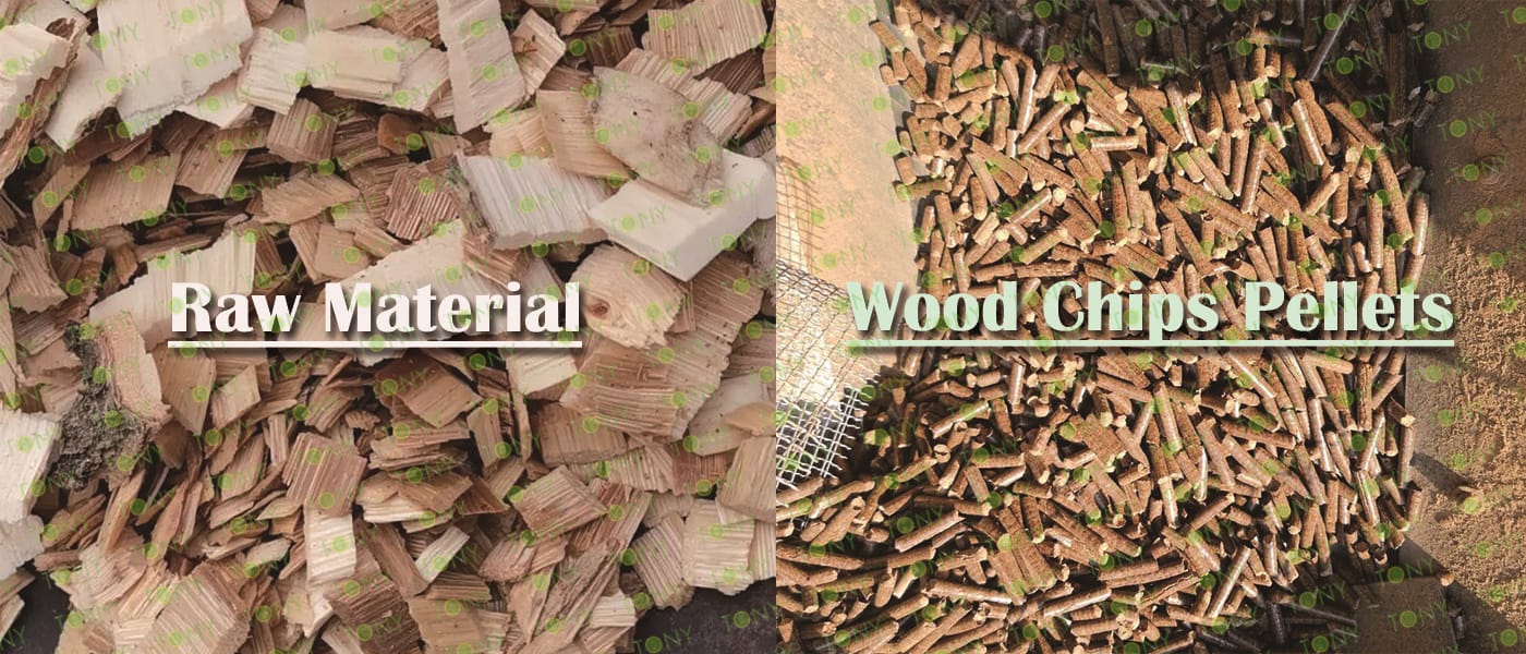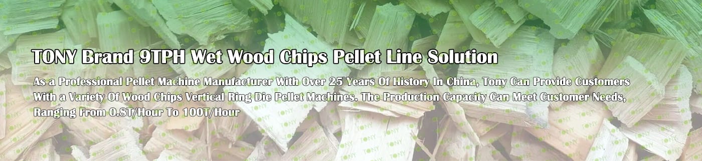TONY Brand 9Ton/Hour Wet Wood Chips Pellet Manufacturing Plant can take wet wood chips, various types of wood - related biomass materials, such as wood pallets ,branches, wood logs, and wood shavings. After pretreatment and processing, wet wood chips is solidified into high - density wood pellet fuel. This fuel is an ideal substitute for coal and oil and plays a role in energy conservation and emission reduction. At present, it has been widely used in regions rich in wood resources.