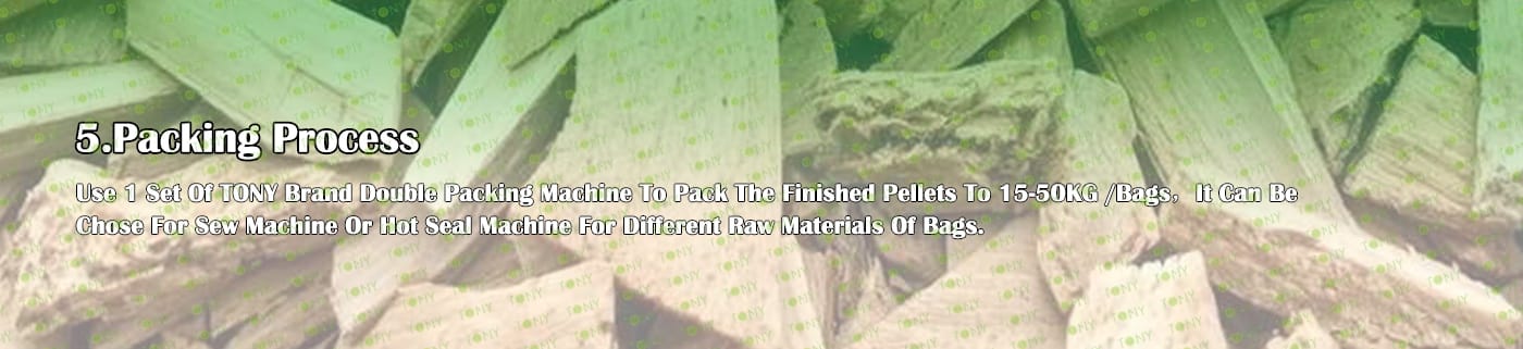 4.Main Machine: Hammer Mill, Rotary Drum Dryer,TONY Pellet Machine TYJ760-III-200KW,Pellets Cooler,Packing Machine And Belt Conveyors