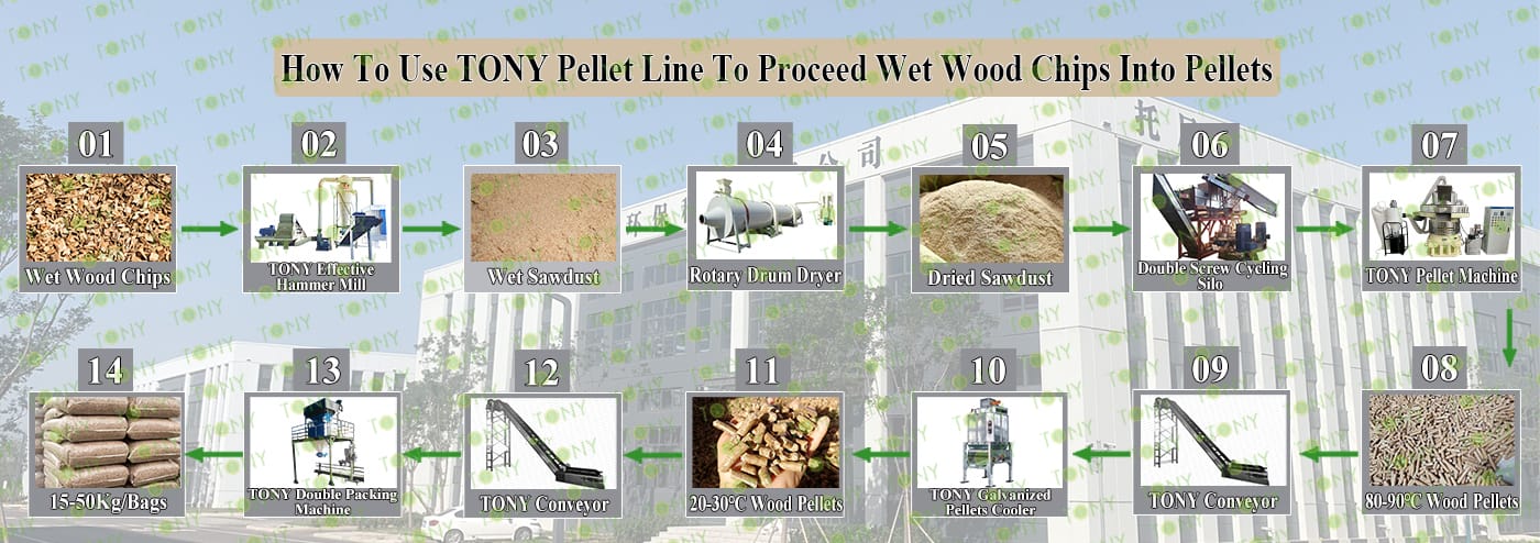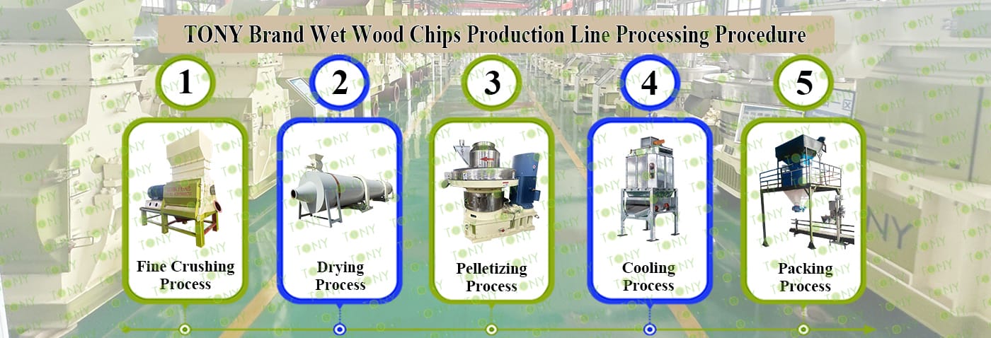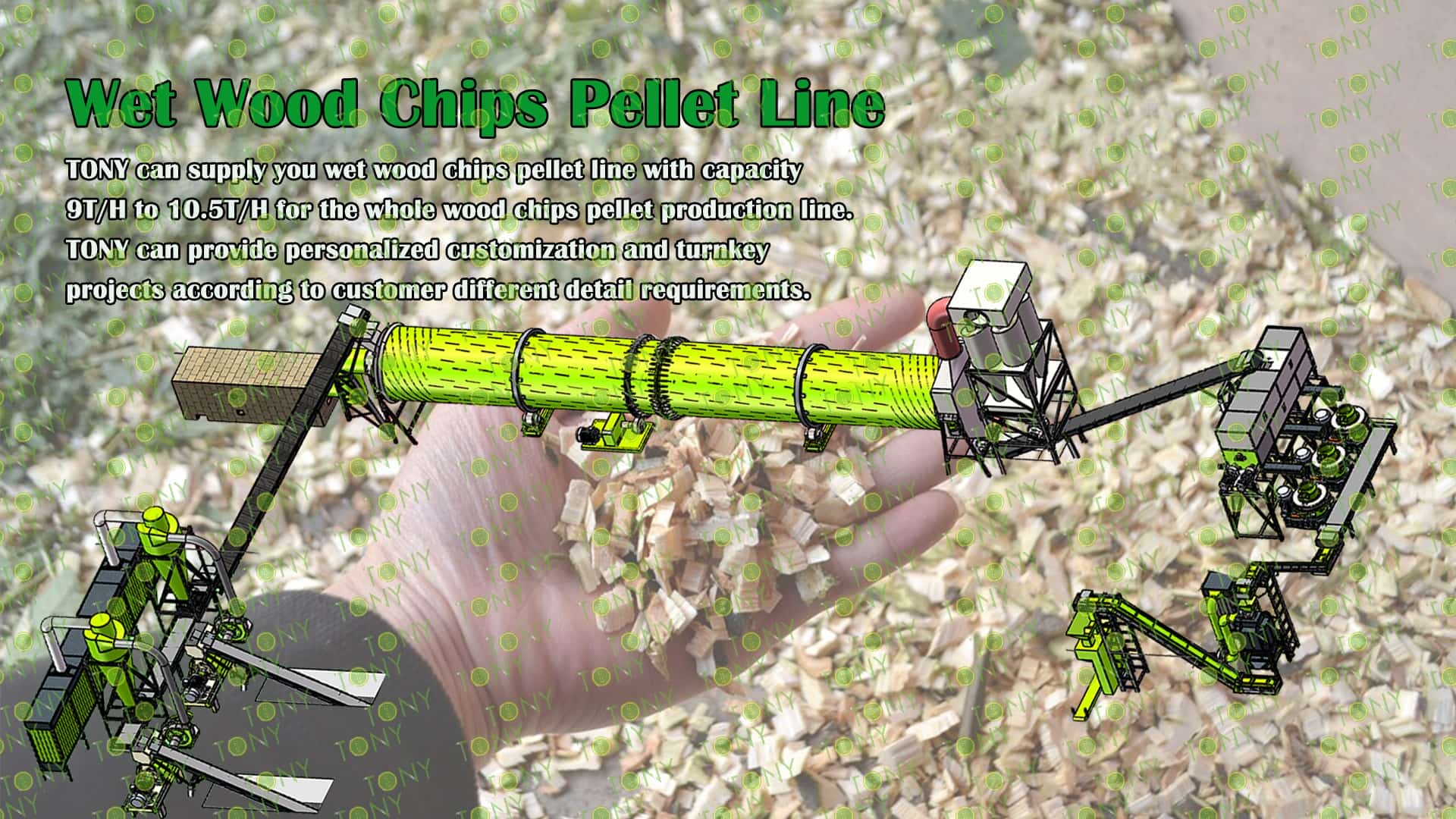 3.TONY Brand 9-10.5Ton /Hour Wet Wood Chips Pellet Line Project Process