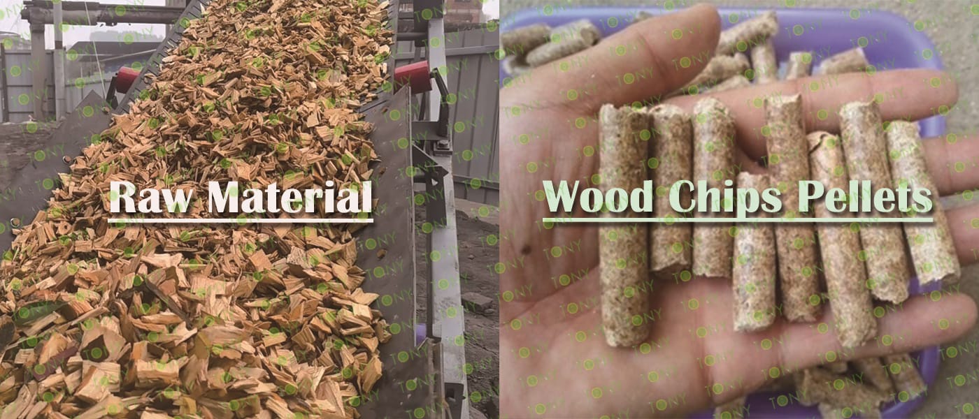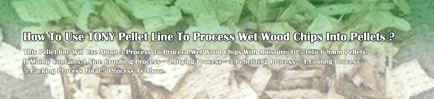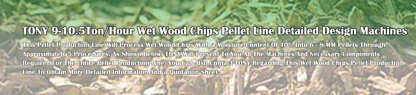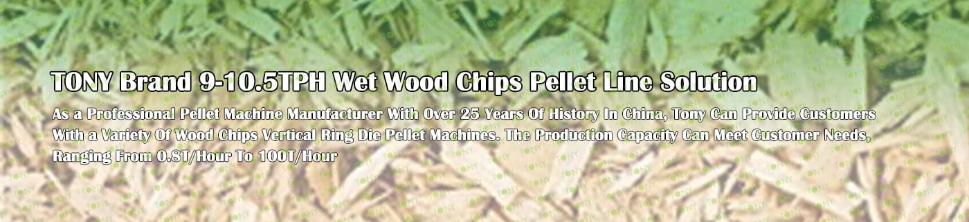 TONY Brand 9-10.5Ton/Hour Wet Wood Chips Pellet Manufacturing Plant can take wet wood chips, various types of wood - related biomass materials, such as wood pallets ,branches, wood logs, and wood shavings. After pretreatment and processing, wet wood chips is solidified into high - density wood pellet fuel. This fuel is an ideal substitute for coal and oil and plays a role in energy conservation and emission reduction. At present, it has been widely used in regions rich in wood resources.
