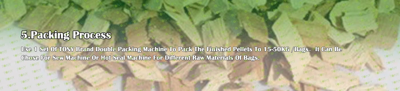 4.Main Machine: Hammer Mill, Rotary Drum Dryer,TONY Pellet Machine TYJ860-Ⅲ-220KW,Pellets Cooler,Packing Machine And Belt Conveyors