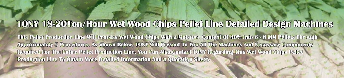 TONY Brand 18-20Ton/Hour Wet Wood Chips Pellet Manufacturing Plant can take wet wood chips, various types of wood - related biomass materials, such as wood pallets ,branches, wood logs, and wood shavings. After pretreatment and processing, wet wood chips is solidified into high - density wood pellet fuel. This fuel is an ideal substitute for coal and oil and plays a role in energy conservation and emission reduction. At present, it has been widely used in regions rich in wood resources.