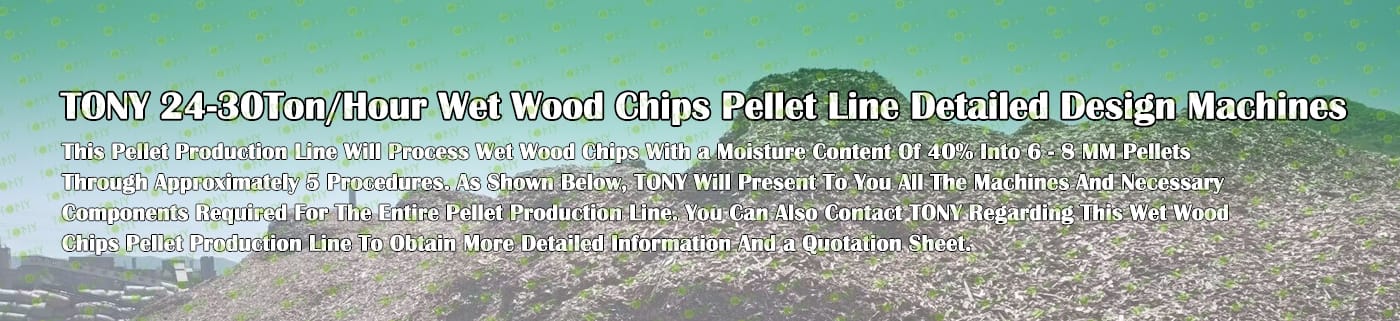TONY Brand 24-30Ton/Hour Wet Wood Chips Pellet Manufacturing Plant can take wet wood chips, various types of wood - related biomass materials, such as wood pallets ,branches, wood logs, and wood shavings. After pretreatment and processing, wet wood chips is solidified into high - density wood pellet fuel. This fuel is an ideal substitute for coal and oil and plays a role in energy conservation and emission reduction. At present, it has been widely used in regions rich in wood resources.