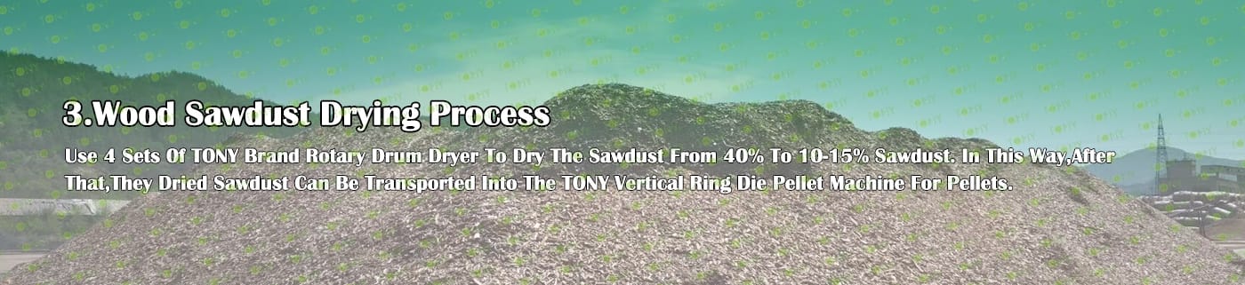 How to use the TONY pellet production line to make pellets from wet wood chips? The process mainly includes the following steps and equipment: 1. Use TONY effective hammer mill to crush the 25-55 mm wood chips into 8-14 mm sawdust. 2.Use TONY large hydraulic storage silo to storage 8-14 mm sawdust 3. Use TONY rotary drum dryer to dry the sawdust with a 40% moisture content down to a moisture content of 10%-15%. 4. Use TONY vertical ring die pellet machine to produce pellets with a diameter of 6-8 mm. 5. Use TONY galvanized cooler to cool the pellets from 80-90°C to 20-30°C. 6. Use TONY ton packing machine to pack the pellets into bags, each weighing 1 ton. For more detailed information and quotations, you can contact TONY. TONY can provide all the above - mentioned products at highly competitive prices and with excellent quality. |