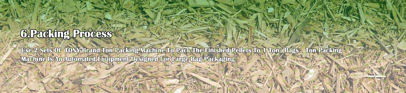 6. Main Equipment: Effective Hammer Mill-TFD85*250-250KW, TONY Large Hydraulic Storage Silo,Rotary Drum Dryer-2.2*24m, TONY Pellet Machine TYJ860-Ⅲ-280KW, Pellet Cooler, Ton Packing Machine and Belt Conveyors