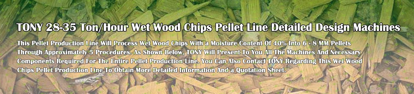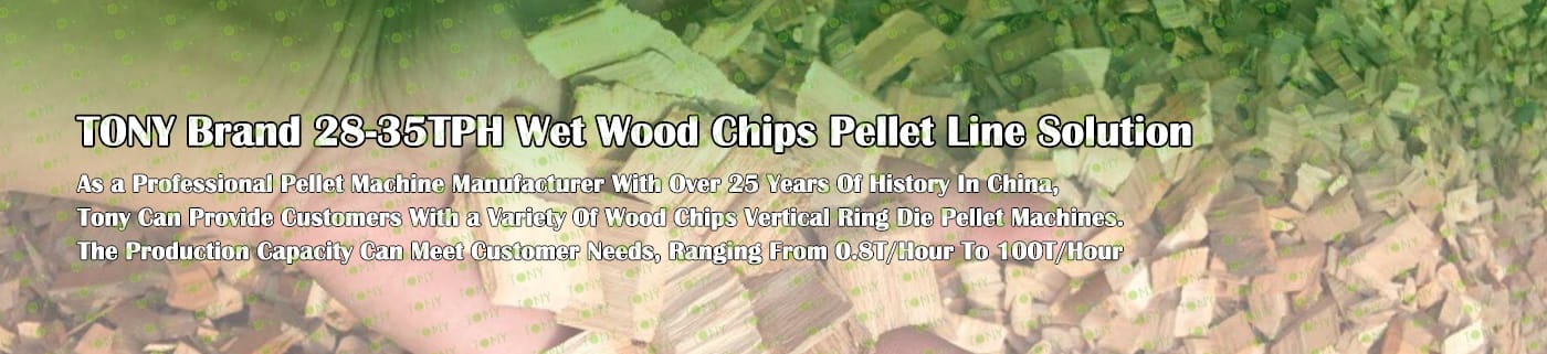 TONY Brand 28-35Ton/Hour Wet Wood Chips Pellet Manufacturing Plant can take wet wood chips, various types of wood - related biomass materials, such as wood pallets ,branches, wood logs, and wood shavings. After pretreatment and processing, wet wood chips is solidified into high - density wood pellet fuel. This fuel is an ideal substitute for coal and oil and plays a role in energy conservation and emission reduction. At present, it has been widely used in regions rich in wood resources.